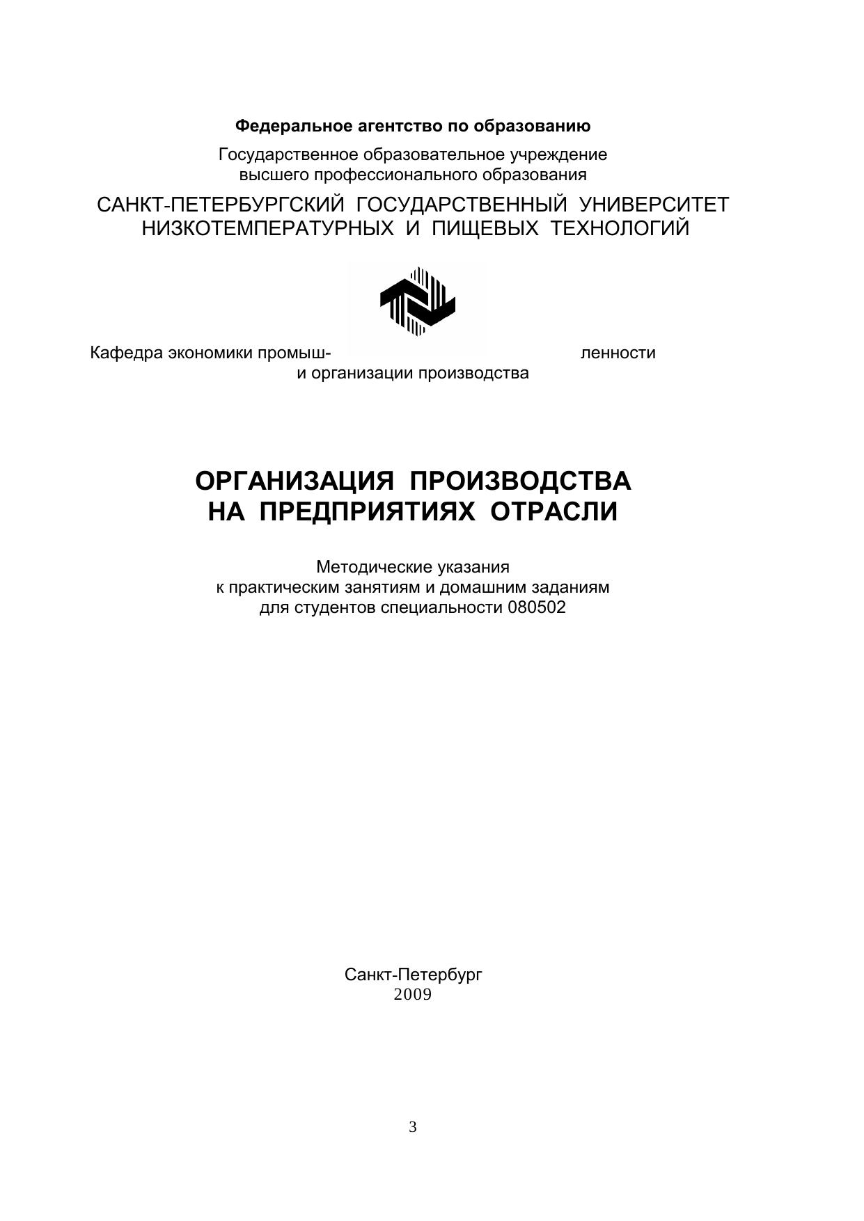 Организация производства на предприятиях отрасли: Методические указания к практическим занятиям и домашним заданиям для студентов спец. 080502