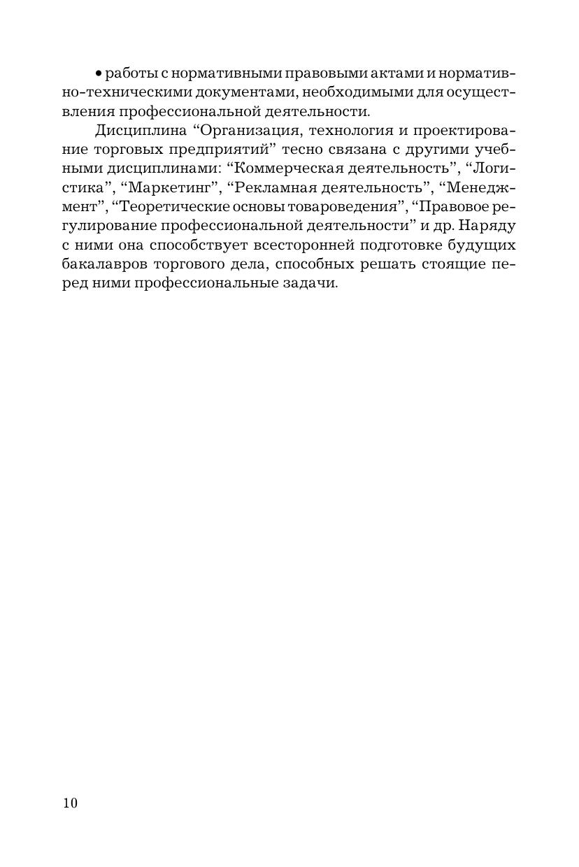 Учебник подготовлен в соответствии с требованиями Федерального государственного образовательного стандарта высшего профессионального образования 3-го поколения. С учетом современного опыта, с использованием действующих нормативных правовых документов рассматриваются вопросы организации, технологии и проектирования торговых предприятий: основы построения процесса товародвижения, роль и функции оптовой торговли в системе хозяйственных отношений, организация складского хозяйства, товароснабжение розничной торговой сети, технология розничной торговли. Отдельные главы учебника посвящены транспортному обеспечению торговой деятельности и ее правовому регулированию, управлению торгово-технологическим процессом и организации труда в торговле, проектированию и строительству предприятий торговли. Для студентов бакалавриата, обучающихся по направлениям подготовки «Торговое дело» и «Экономика», а также специалистов коммерческих служб торговых организаций, начинающих предпринимателей и слушателей школ бизнеса.