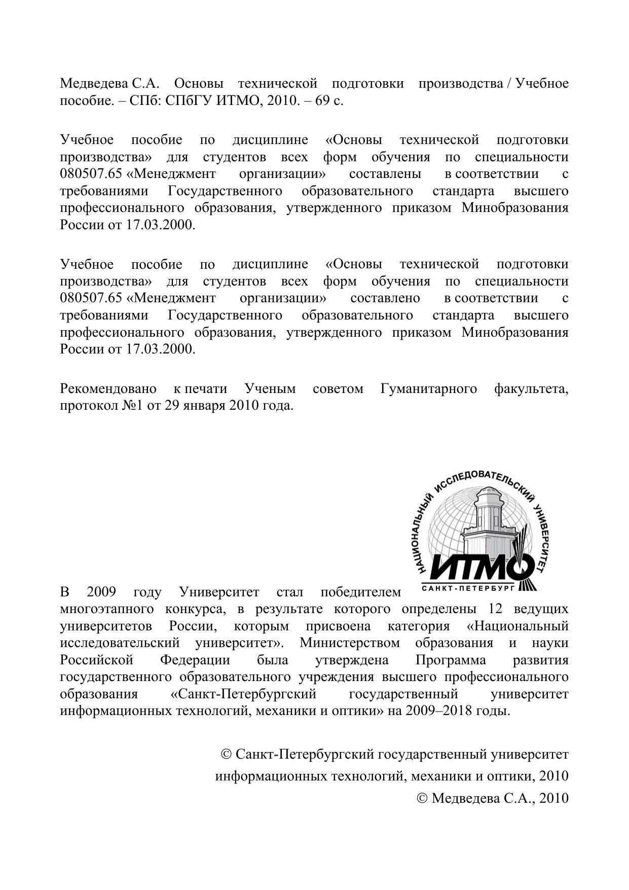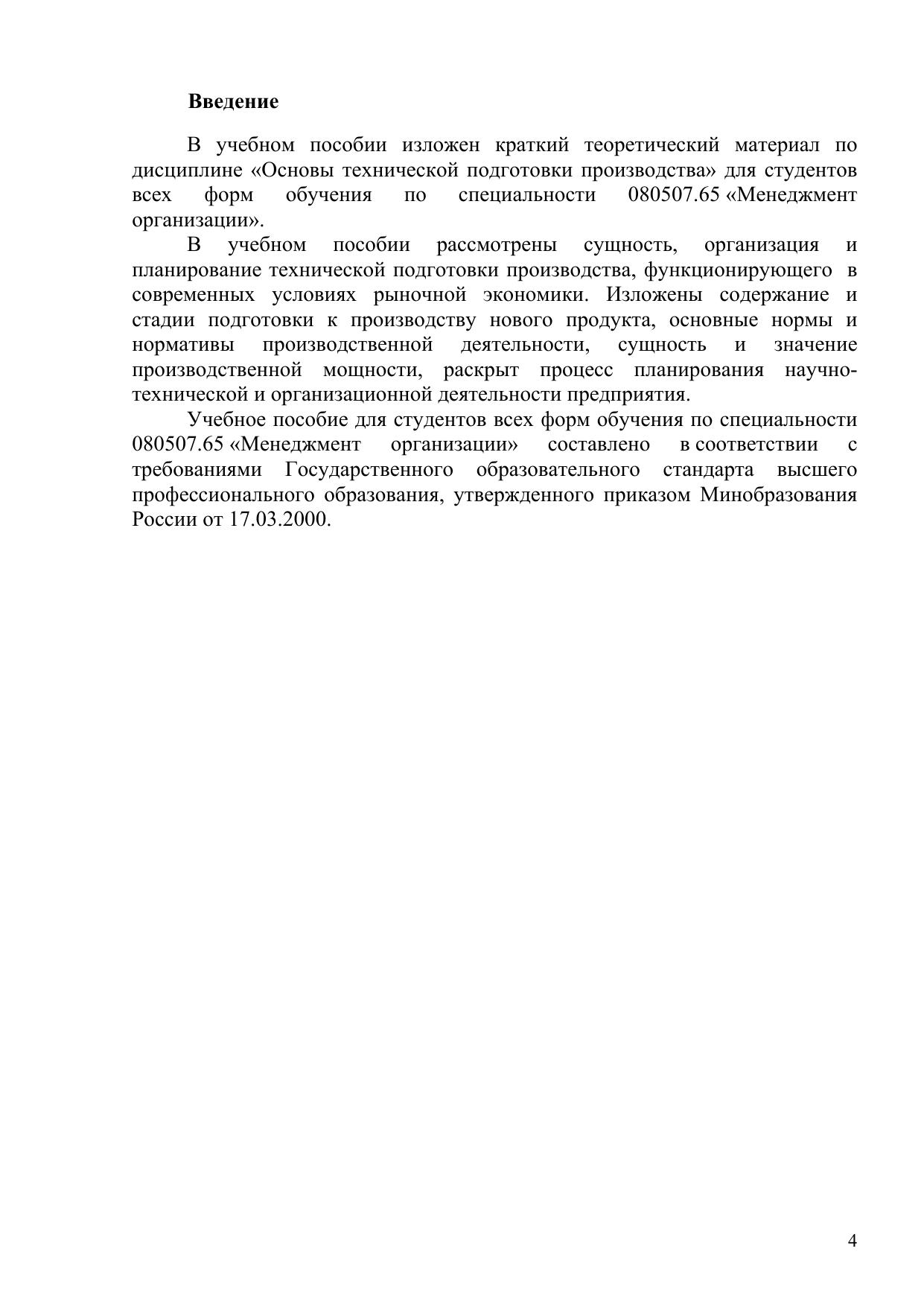Учебное пособие по дисциплине «Основы технической подготовки производства» для студентов всех форм обучения по специальности 080507.65 «Менеджмент организации».