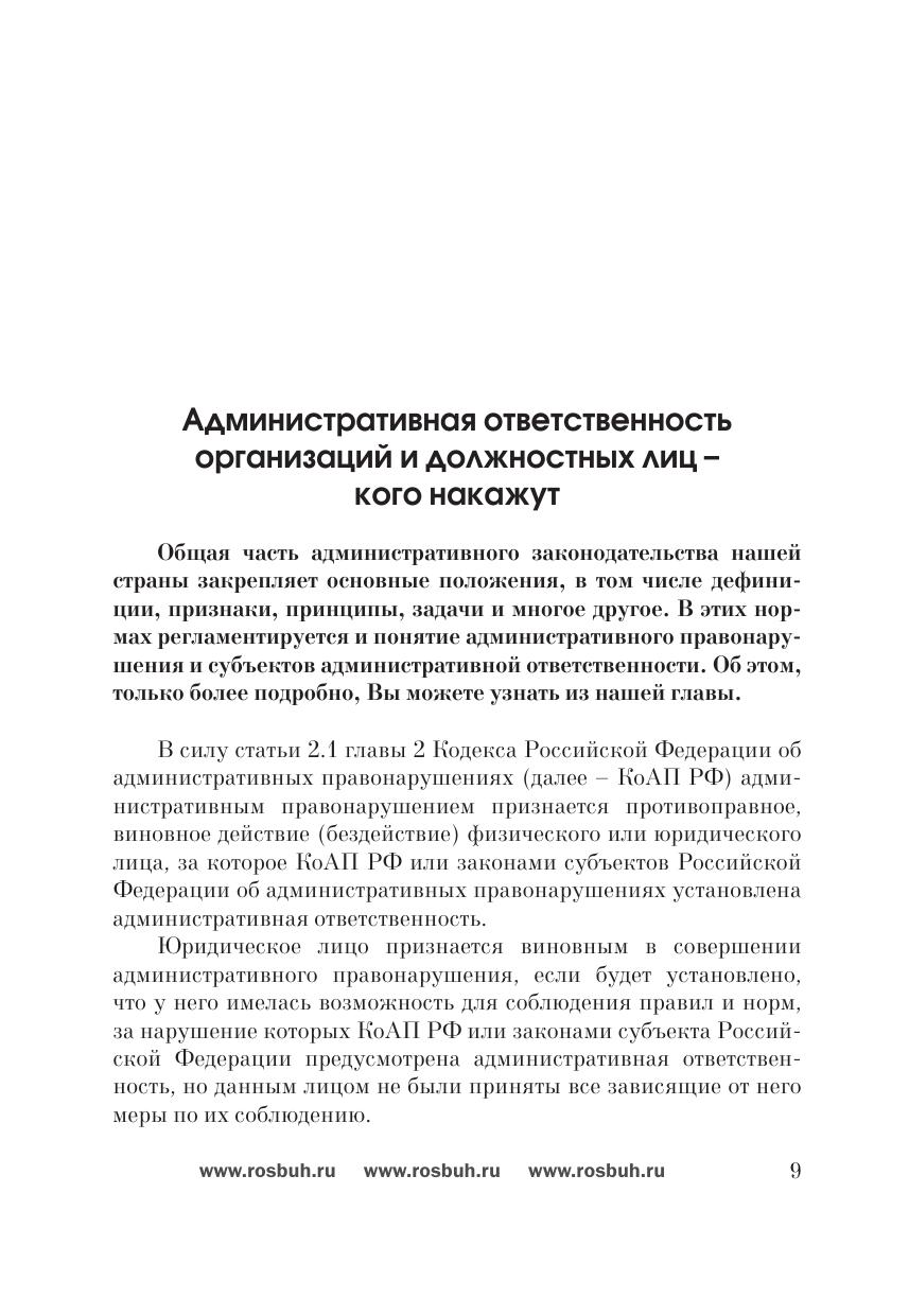 В данной книге содержится перечень всех нюансов, важных для руководителей российских фирм, которые хотят вести бизнес без проблем со стороны контролирующих органов. За что организации несут ответственность и какую, какие нарушения наиболее часто встречаются, если говорить о взаимоотношениях с персоналом; налоговые правонарушения; административные штрафы – все эти вопросы освещены в данном издании.