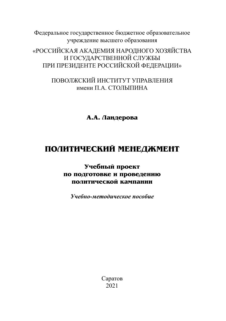 Политический менеджмент: учебный проект по подготовке и проведению политической кампании