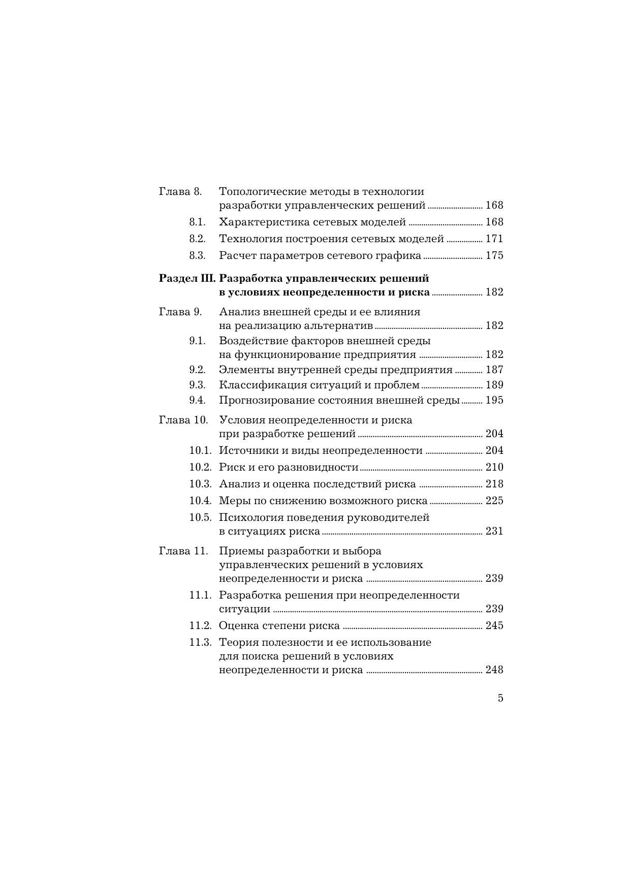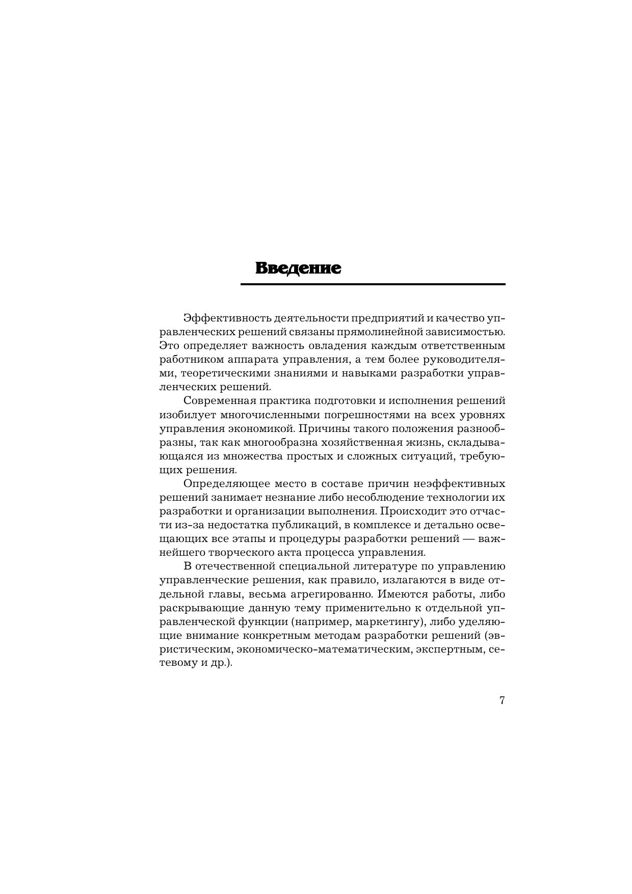 В учебнике изложены теоретические положения и практические проблемы разработки управленческих решений. В комплексе рассмотрены функции, классификация, типология, условия и факторы качества решений, технология и моделирование процесса их разработки на основе системного подхода, методов исследования операций. Предложены приемы разработки и выбора решений в условиях неопределенности, риска, экстремальных ситуаций. Освещаются процедуры организации и контроля исполнения, вопросы оценки эффективности решений и ответственности за их последствия. Организационно-технический аспект увязан с психологической и нравственно-этической сторонами разработки и исполнения решений.