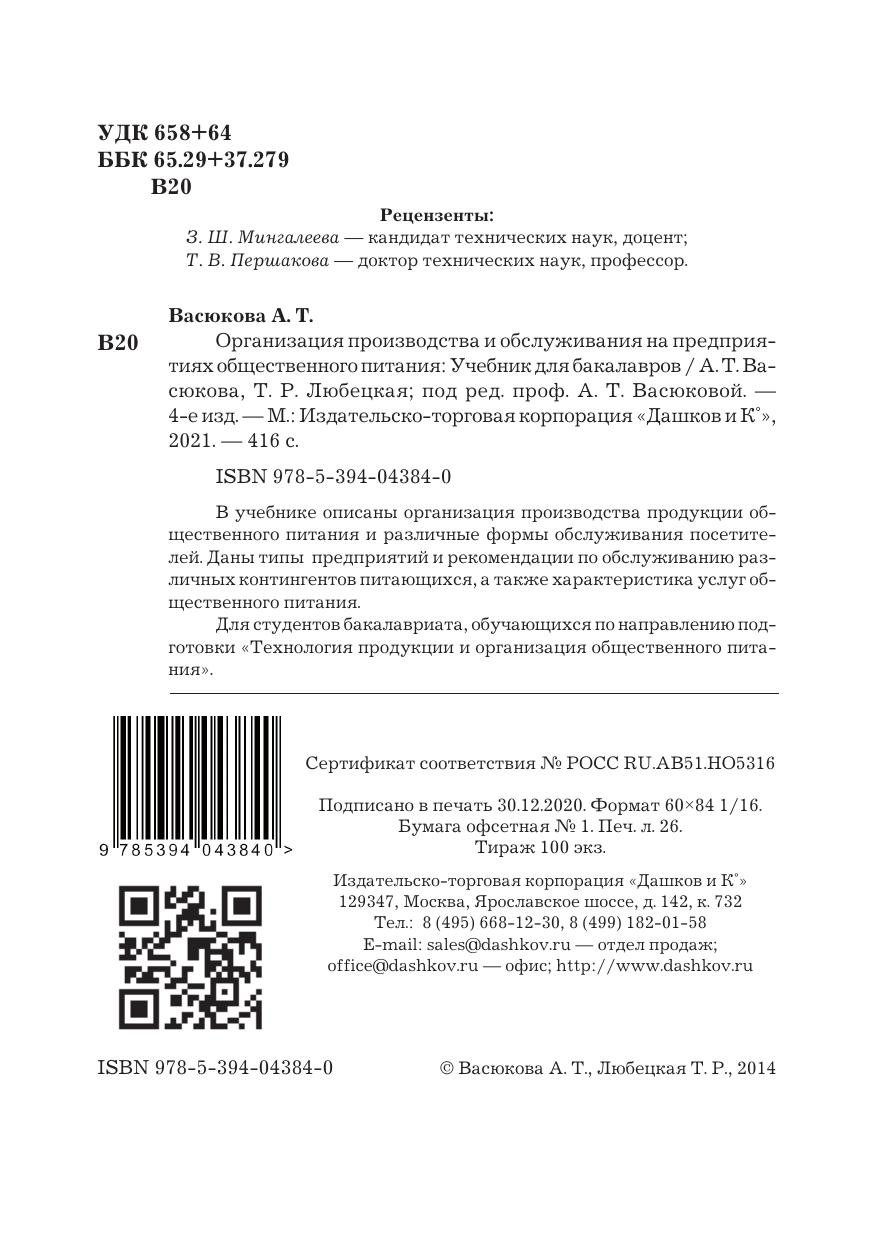 В учебнике описаны организация производства продукции общественного питания и различные формы обслуживания посетителей. Даны типы предприятий и рекомендации по обслуживанию различных контингентов питающихся, а также характеристика услуг общественного питания. Для студентов бакалавриата, обучающихся по направлению подготовки "Технология продукции и организация общественного питания", а также работников предприятий общественного питания