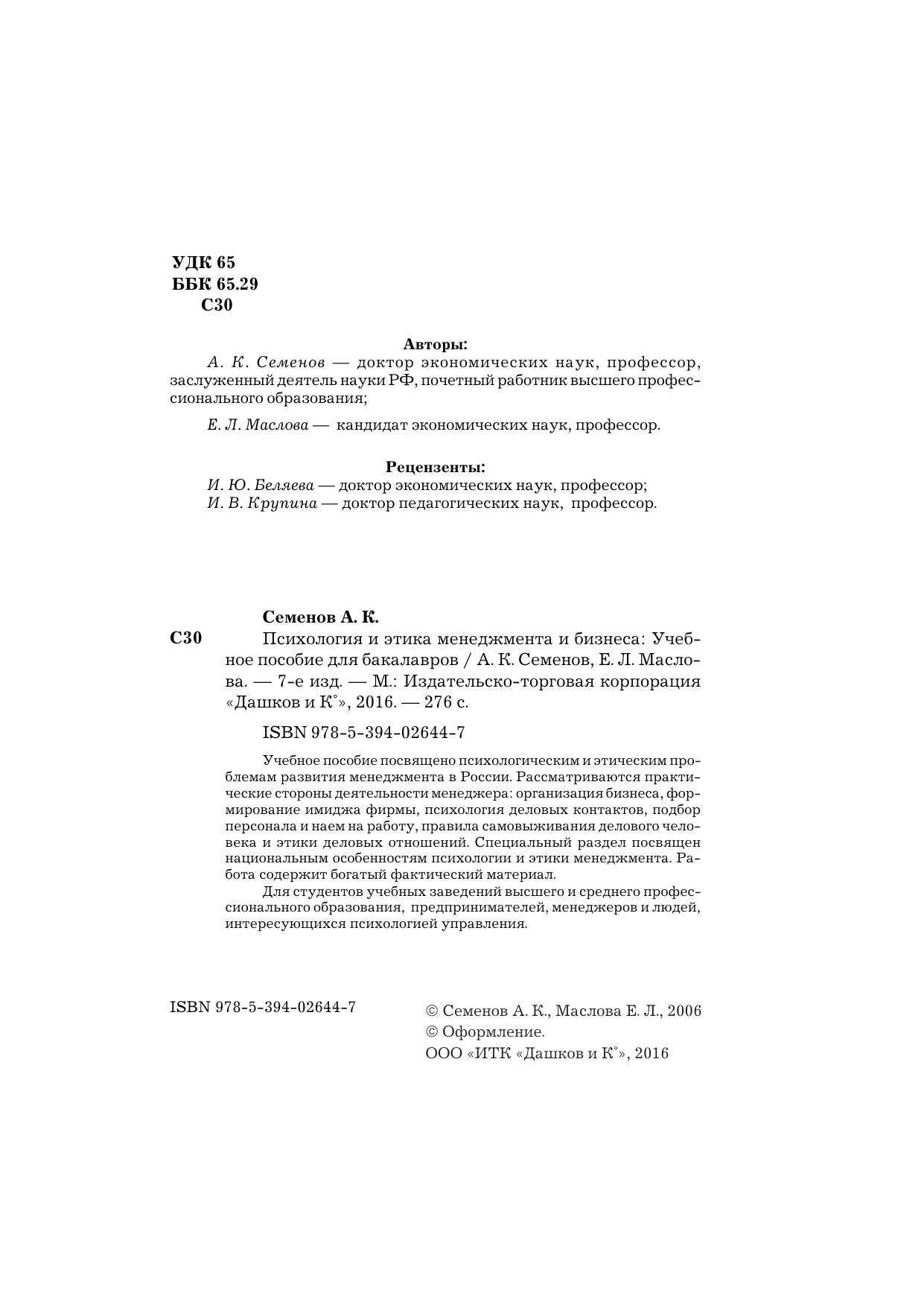 Психология и этика менеджмента и бизнеса: Учебное пособие для бакалавров