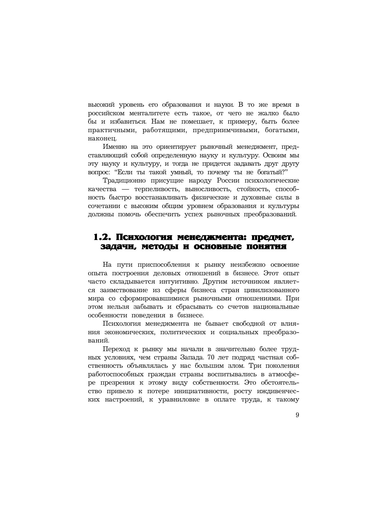 Учебное пособие посвящено психологическим и этическим проблемам развития менеджмента в России. Рассматриваются практические стороны деятельности менеджера: организация бизнеса, формирование имиджа фирмы, психология деловых контактов, подбор персонала и наем на работу, правила самовыживания делового человека и этики деловых отношений. Специальный раздел посвящен национальным особенностям психологии и этики менеджмента. Работа содержит богатый фактический материал.