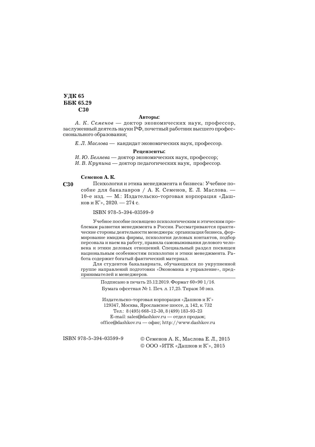 Учебное пособие посвящено психологическим и этическим проблемам развития менеджмента в России. Рассматриваются практические стороны деятельности менеджера: организация бизнеса, формирование имиджа фирмы, психология деловых контактов, подбор персонала и наем на работу, правила самовыживания делового человека и этики деловых отношений. Специальный раздел посвящен национальным особенностям психологии и этики менеджмента. Работа содержит богатый фактический материал. Для студентов учебных заведений высшего и среднего профессионального образования, предпринимателей, менеджеров и людей, интересующихся психологией управления.