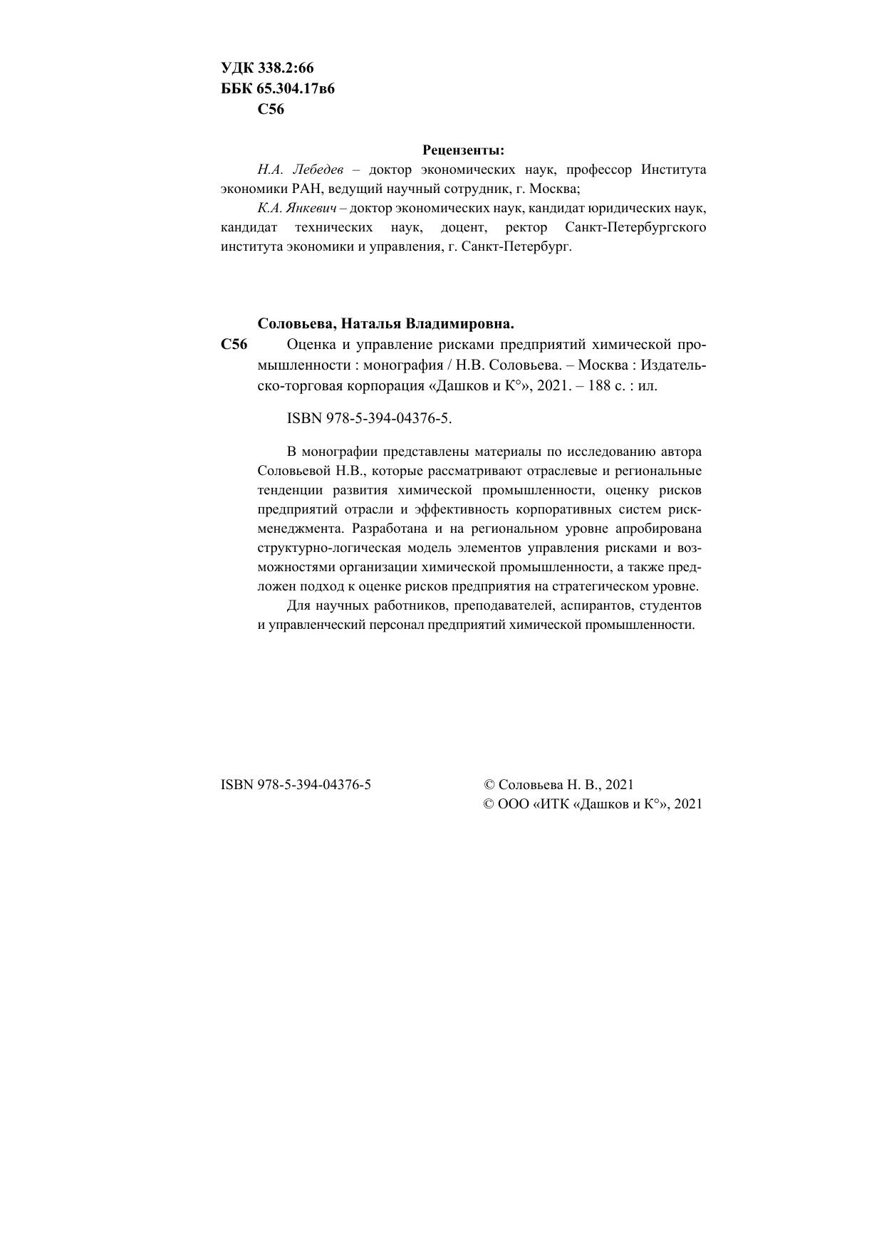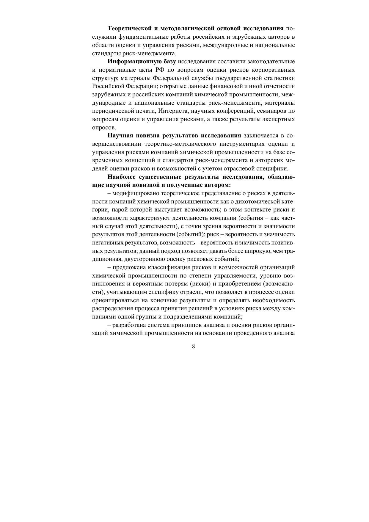 В монографии представлены материалы по исследованию автора Соловьевой Н.В., которые рассматривают отраслевые и региональные тенденции развития химической промышленности, оценку рисков предприятий отрасли и эффективность корпоративных систем риск-менеджмента. Разработана и на региональном уровне апробирована структурно-логическая модель элементов управления рисками и возможностями организации химической промышленности, а также предложен подход к оценке рисков предприятия на стратегическом уровне. Для научных работников, преподавателей, аспирантов, студентов и управленческий персонал предприятий химической промышленности.