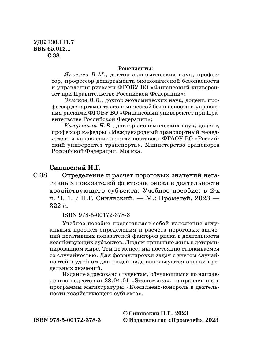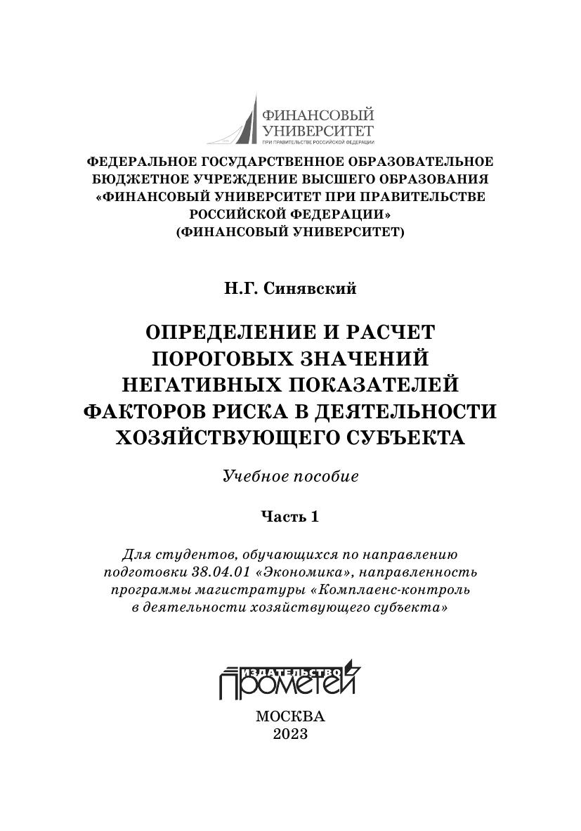 Определение и расчет пороговых значений негативных показателей факторов риска в деятельности хозяйствующего субъекта: в 2-х ч. Ч. 1