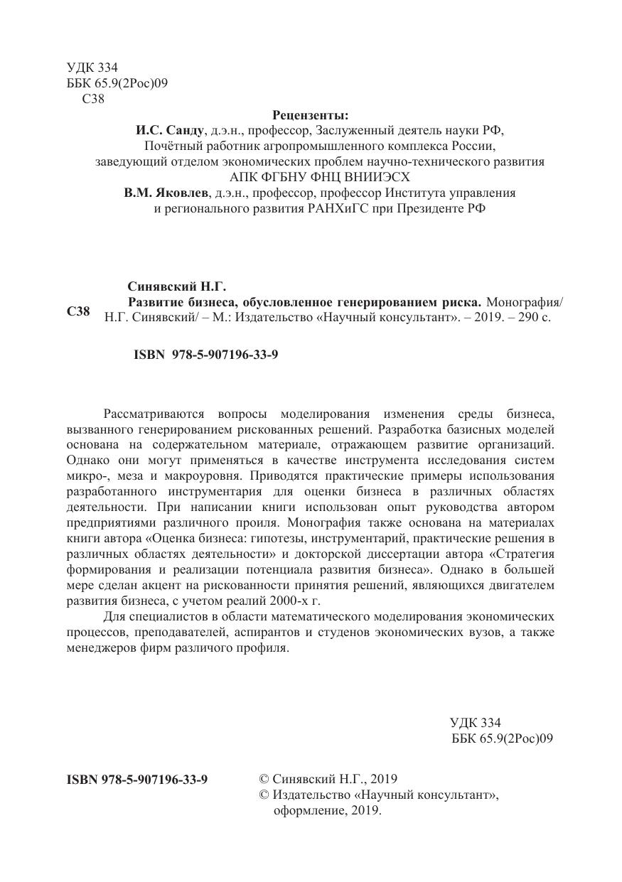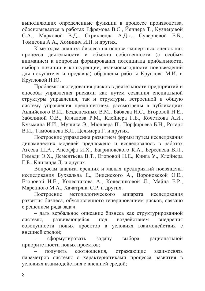 Рассматриваются вопросы моделирования изменения среды бизнеса, вызванного генерированием рискованных решений. Разработка базисных моделей основана на содержательном материале, отражающем развитие организаций. Однако они могут применяться в качестве инструмента исследования систем микро-, меза и макроуровня. Приводятся практические примеры использования разработанного инструментария для оценки бизнеса в различных областях деятельности. При написании книги использован опыт руководства автором предприятиями различного проиля. Монография также основана на материалах книги автора «Оценка бизнеса: гипотезы, инструментарий, практические решения в различных областях деятельности» и докторской диссертации автора «Стратегия формирования и реализации потенциала развития бизнеса». Однако в большей мере сделан акцент на рискованности принятия решений, являющихся двигателем развития бизнеса, с учетом реалий 2000-х г. Для специалистов в области математического моделирования экономических процессов, преподавателей, аспирантов и студенов экономических вузов, а также менеджеров фирм различого профиля