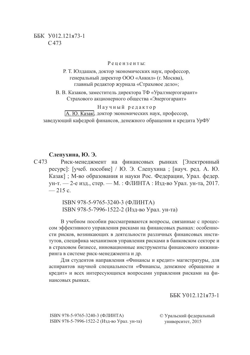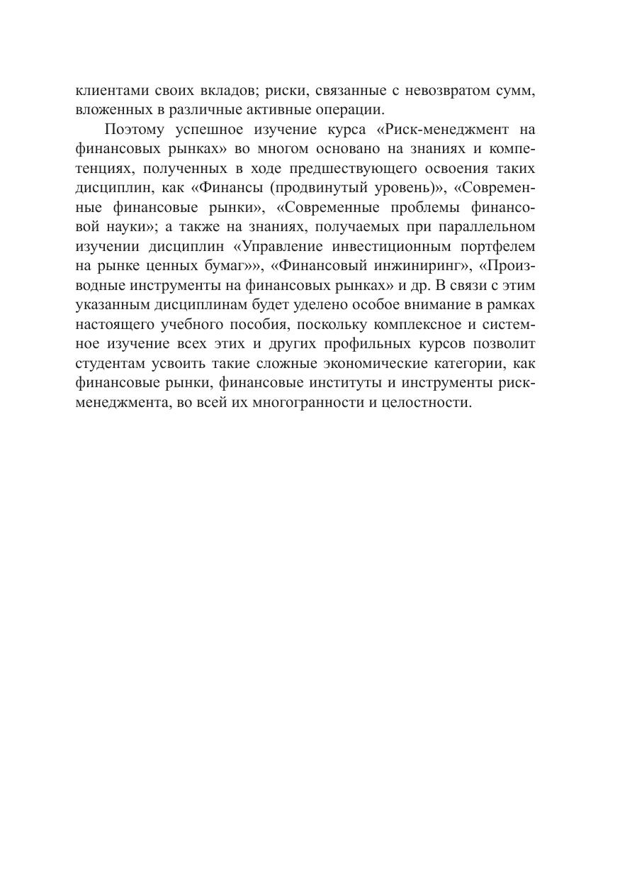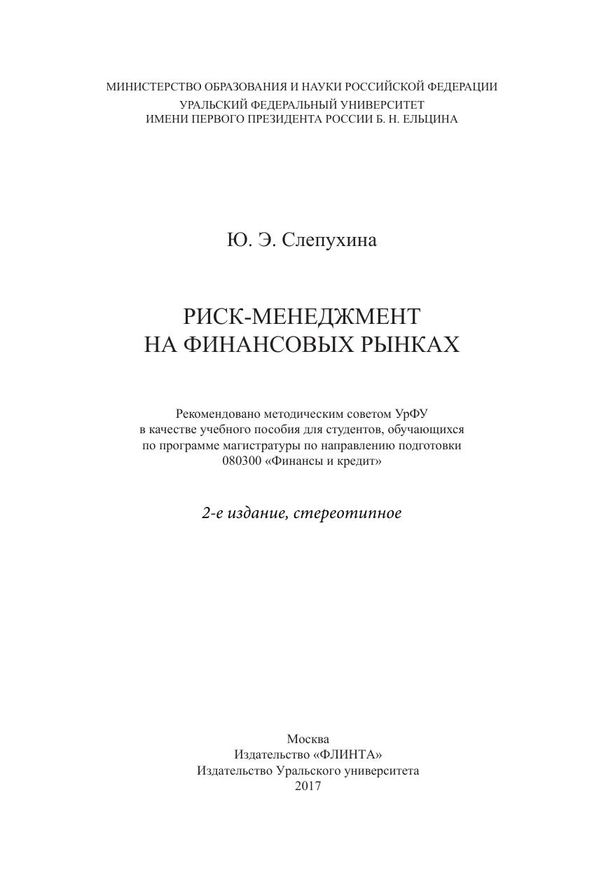 В учебном пособии рассматриваются вопросы, связанные с процессом эффективного управления рисками на финансовых рынках: особенности рисков, возникающих в деятельности различных финансовых институтов, специфика механизмов управления рисками в банковском секторе и в страховом бизнесе, инновационные инструменты финансового инжиниринга в системе риск-менеджмента и др. Для студентов направления «Финансы и кредит» магистратуры, для аспирантов научной специальности «Финансы, денежное обращение и кредит» и всех интересующихся вопросами управления рисками на финансовых рынках.
