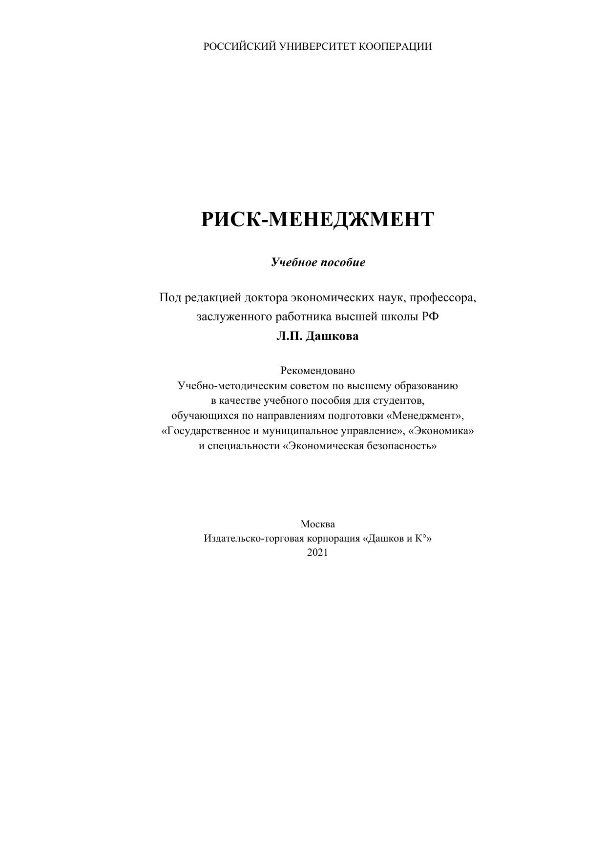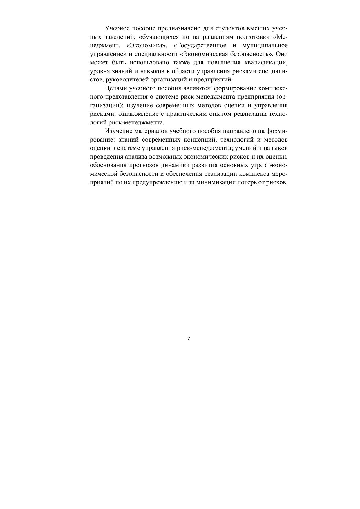 риск-менеджмента, показываются его место и роль в системе управления предприятием; изложены методы анализа, оценки и эффективного управления рисками в системе риск-менеджмента.