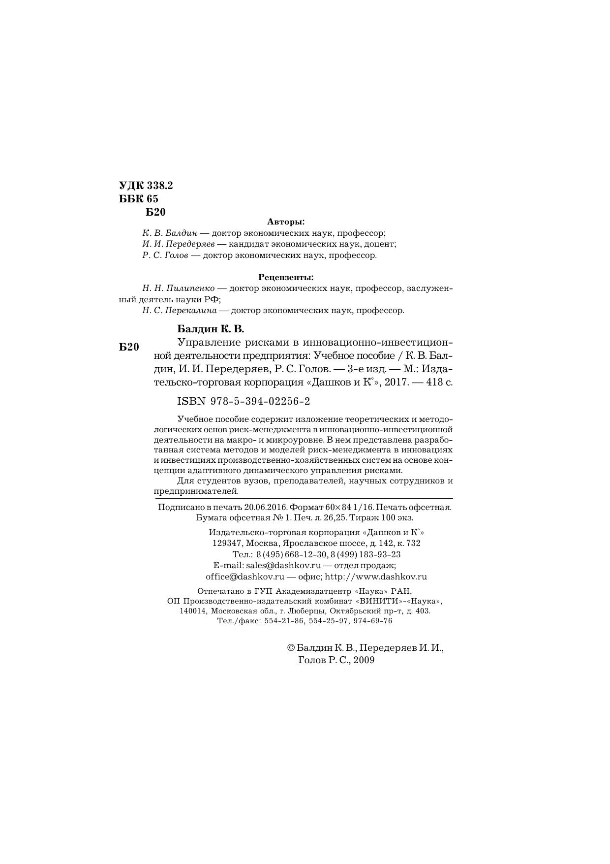 Авторы: Балдин К.В., Передеряев И.И., Голов Р.С.