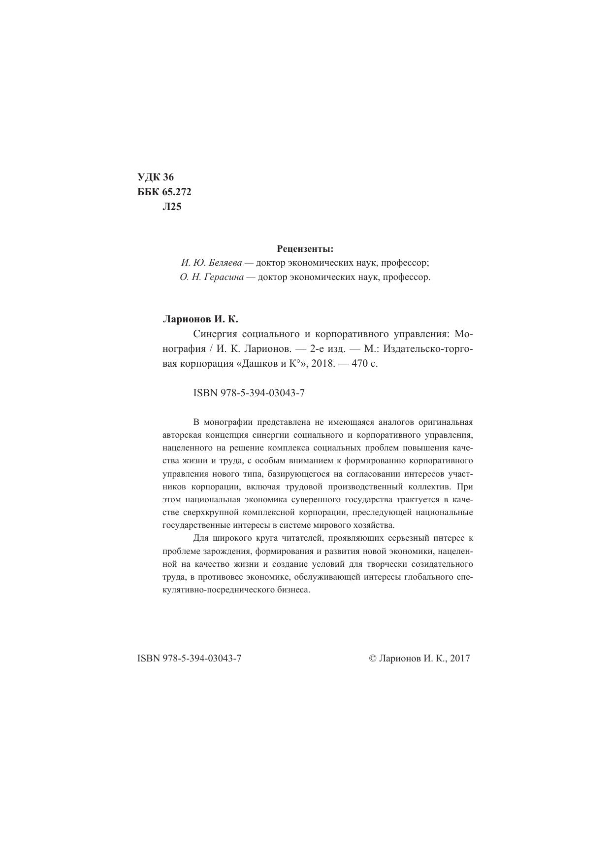 В монографии представлена не имеющаяся аналогов оригинальная авторская концепция синергии социального и корпоративного управления, нацеленного на решение комплекса социальных проблем повышения качества жизни и труда, с особым вниманием к формированию корпоративного управления нового типа, базирующегося на согласовании интересов участников корпорации, включая трудовой производственный коллектив. При этом национальная экономика суверенного государства трактуется в качестве сверхкрупной комплексной корпорации, преследующей национальные государственные интересы в системе мирового хозяйства. Для широкого круга читателей, проявляющих серьезный интерес к проблеме зарождения, формирования и развития новой экономики, нацеленной на качество жизни и создание условий для творчески созидательного труда, в противовес экономике, обслуживающей интересы глобального спекулятивно-посреднического бизнеса.