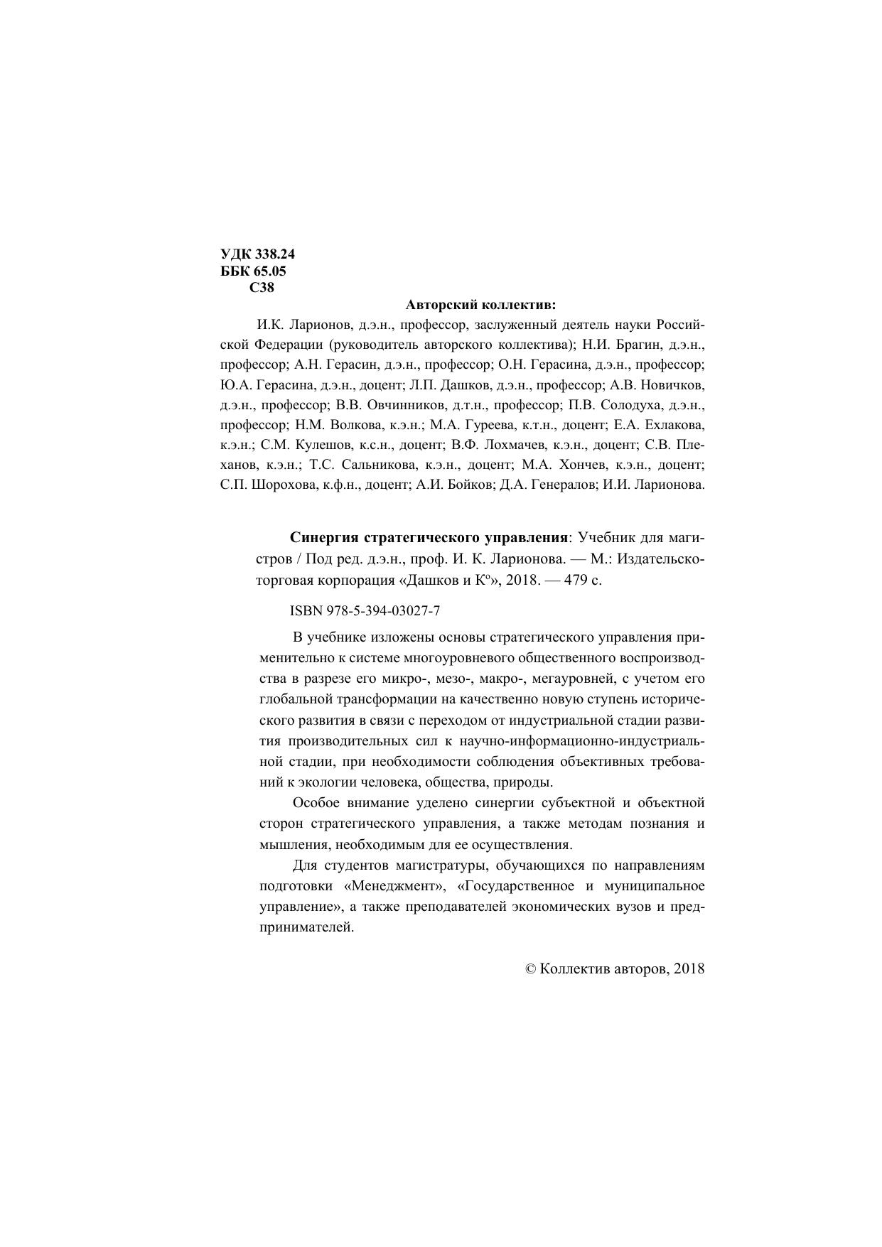 В учебнике изложены основы стратегического управления применительно в системе многоуровневого общественного воспроизводства в разрезе его мезо-, макро-, мегауровней, с учетом его глобальной трансформации на качественно новую ступень исторического развития в связи с переходом от индустриальной стадии развития производительных сил к научно-информационно-индустриальной стадии, при необходимости соблюдения объективных требований к экологии человека, общества, природы.