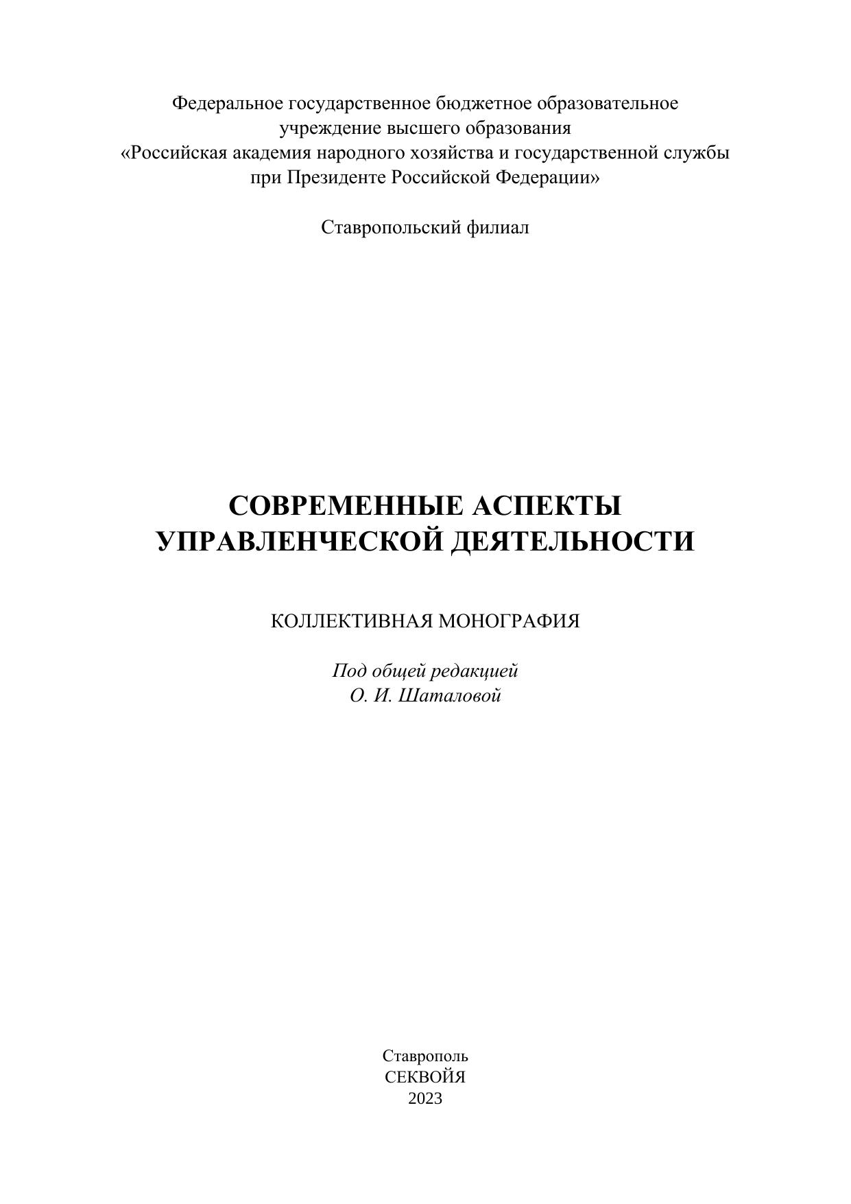Современные аспекты управленческой деятельности