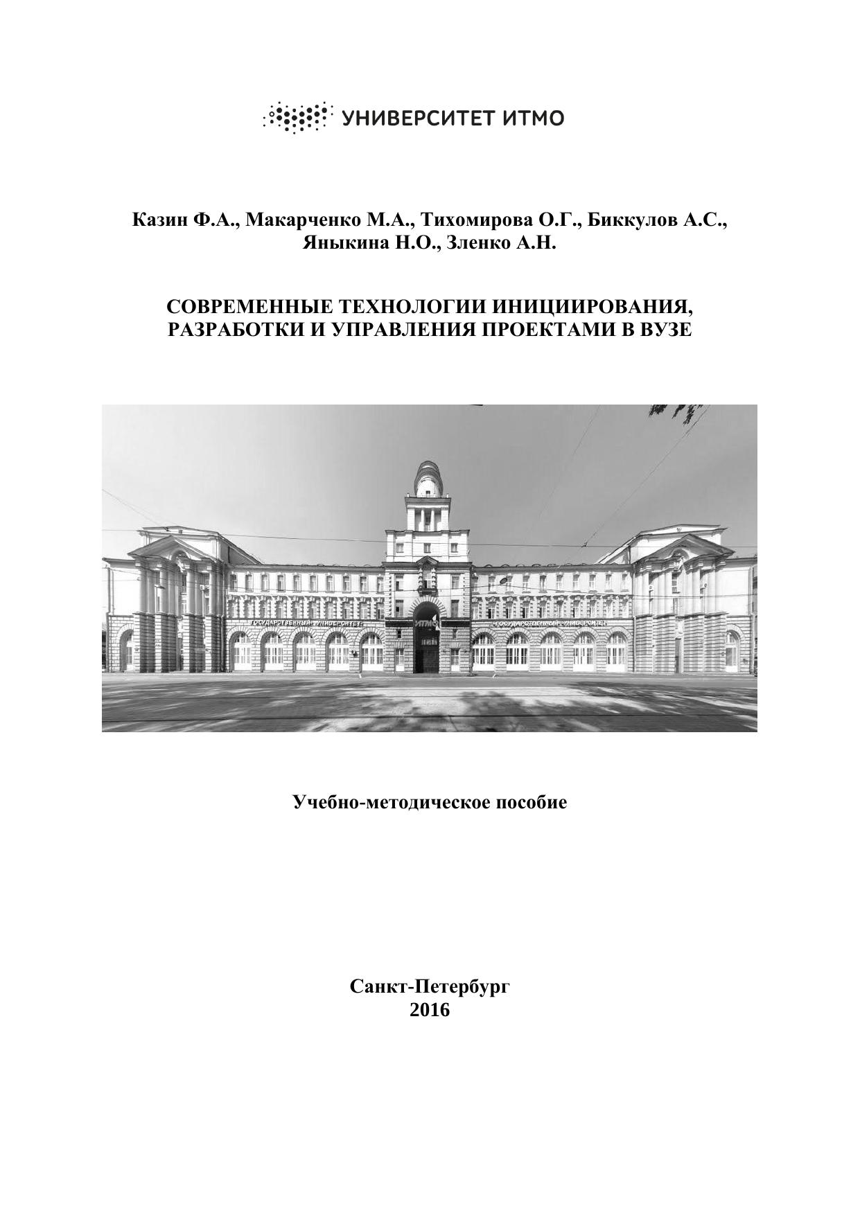 Современные технологии инициирования, разработки и управления проектами в вузе: учебно-методическое пособие