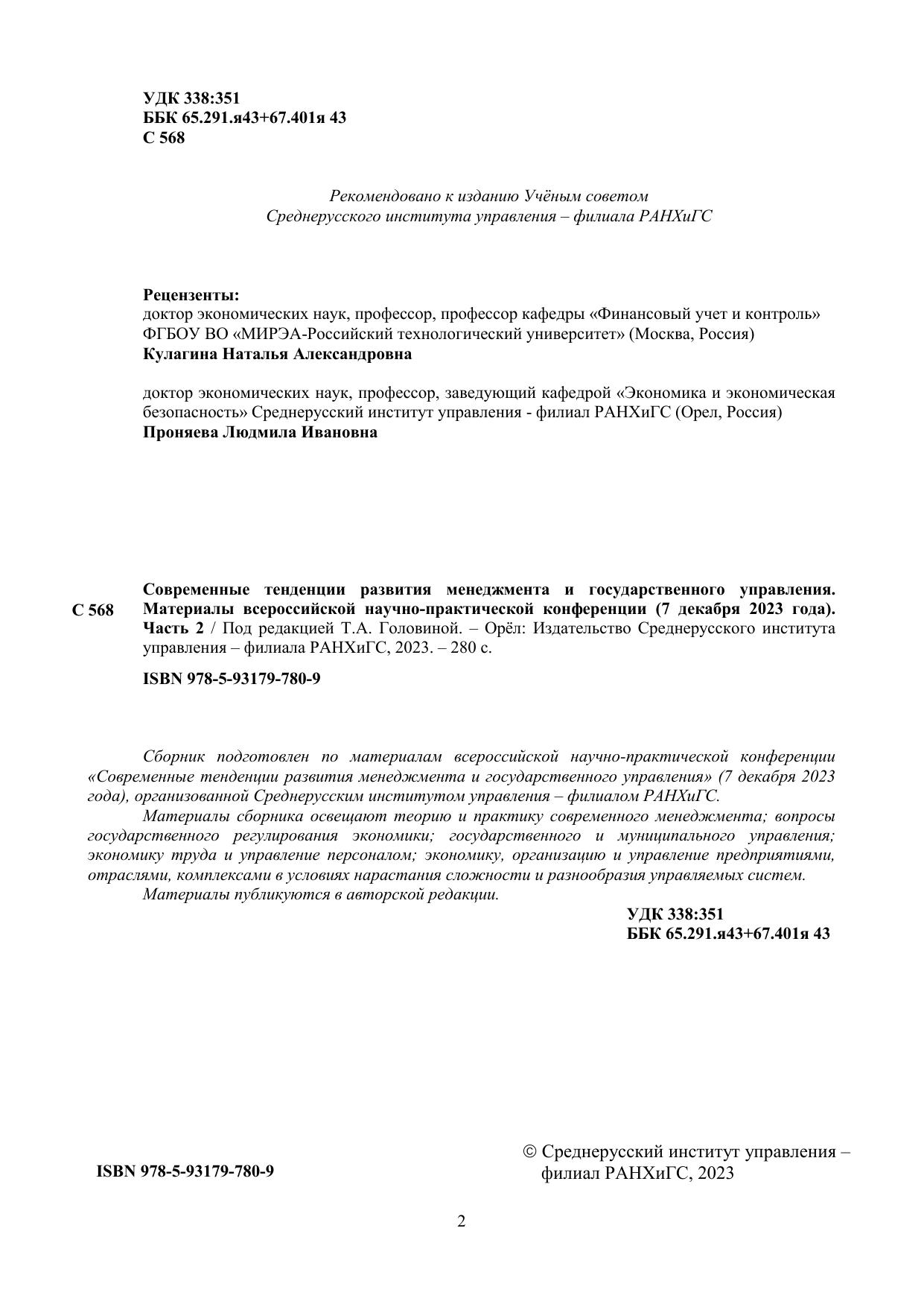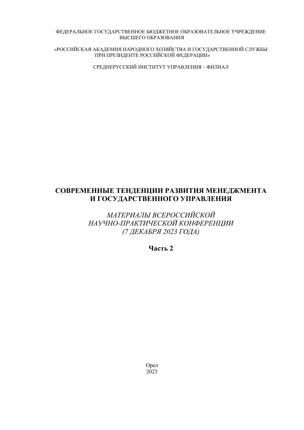 Современные тенденции развития менеджмента и государственного управления. Материалы всероссийской научно-практической конференции (7 декабря 2023 года). Часть 2