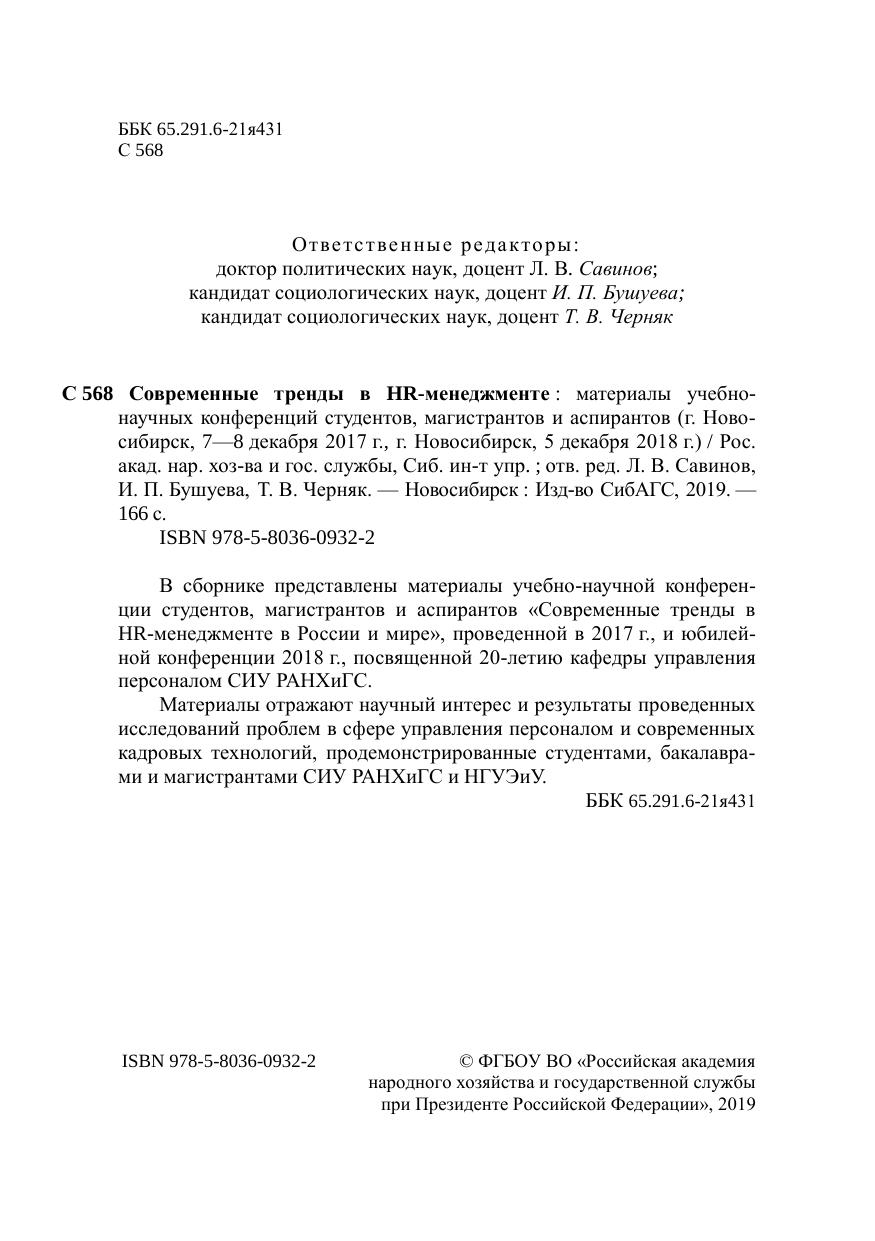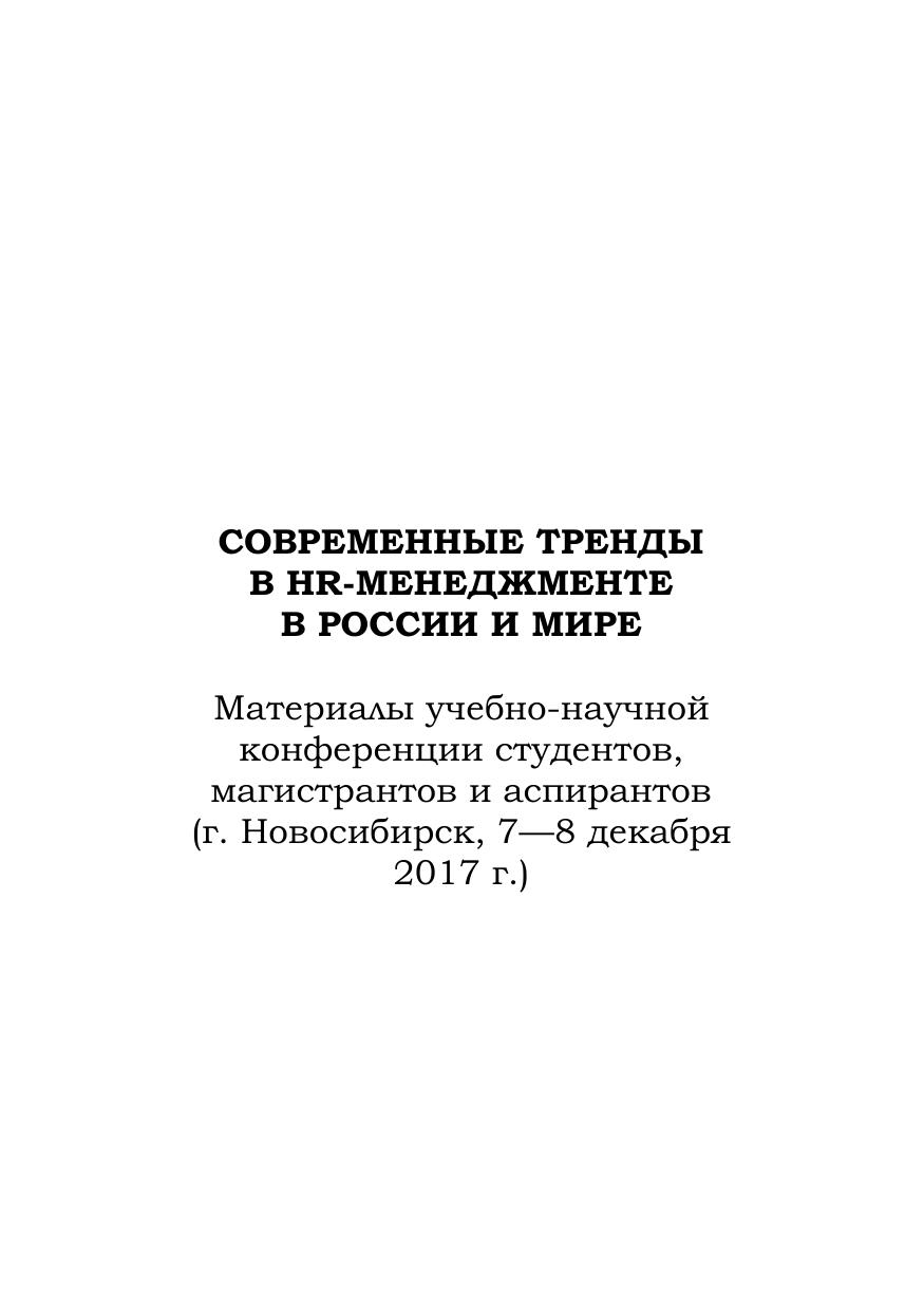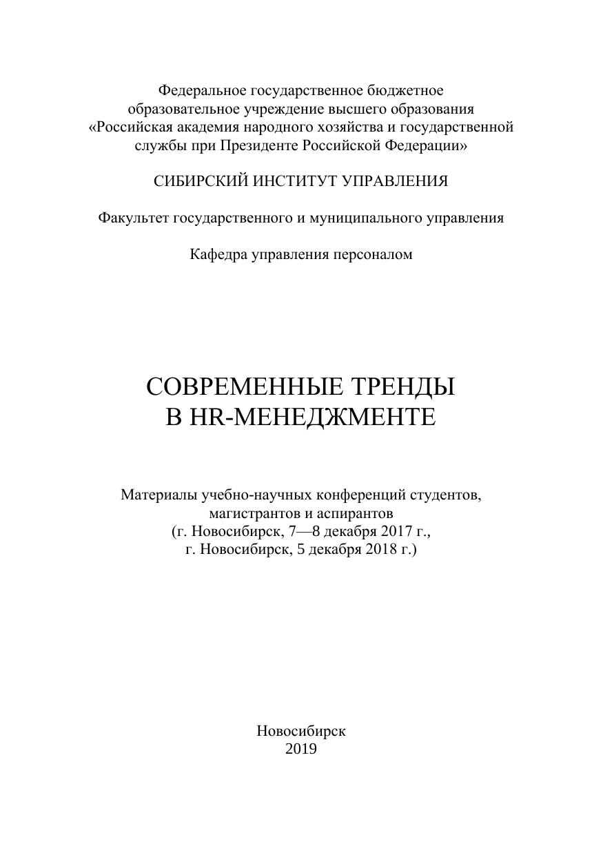 Современные тренды в HR менеджменте: материалы учебно научных конференций студентов, магистрантов и аспирантов (г. Новосибирск, 7 8 декабря 2017 г. г. Новосибирск, 5 декабря 2018 г.)