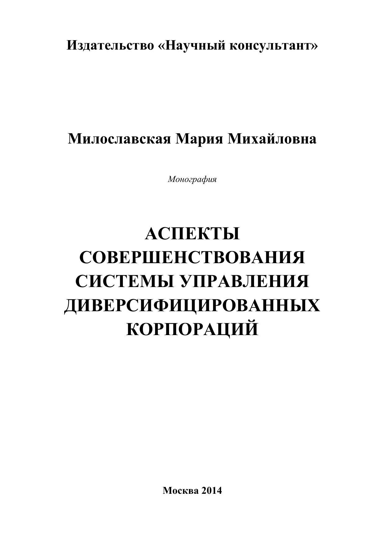 В данной работе рассматриваются концептуальные основы, принципы и методологии формирования системы управления диверсифицированными корпорациями. Научные положения, выводы и рекомендации, содержащиеся в исследовании, позволяют более глубоко анализировать стратегии управления диверсификацией российских корпораций, основные проблемы создания механизма их формирования. Результаты исследования могут найти применение при разработке научно обоснованных инструментов государственного регулирования деятельности диверсифицированных корпораций, как важнейшего фактора повышения экономической безопасности страны. Работа предназначена для руководителей и специалистов органов управления диверсифицированных корпораций. Материалы исследования могут быть использованы в учебном процессе в учреждениях высшего профессионального образования и при проведении научно-исследовательских работ по проблемам диверсификации деятельности корпораций и их систем управления.