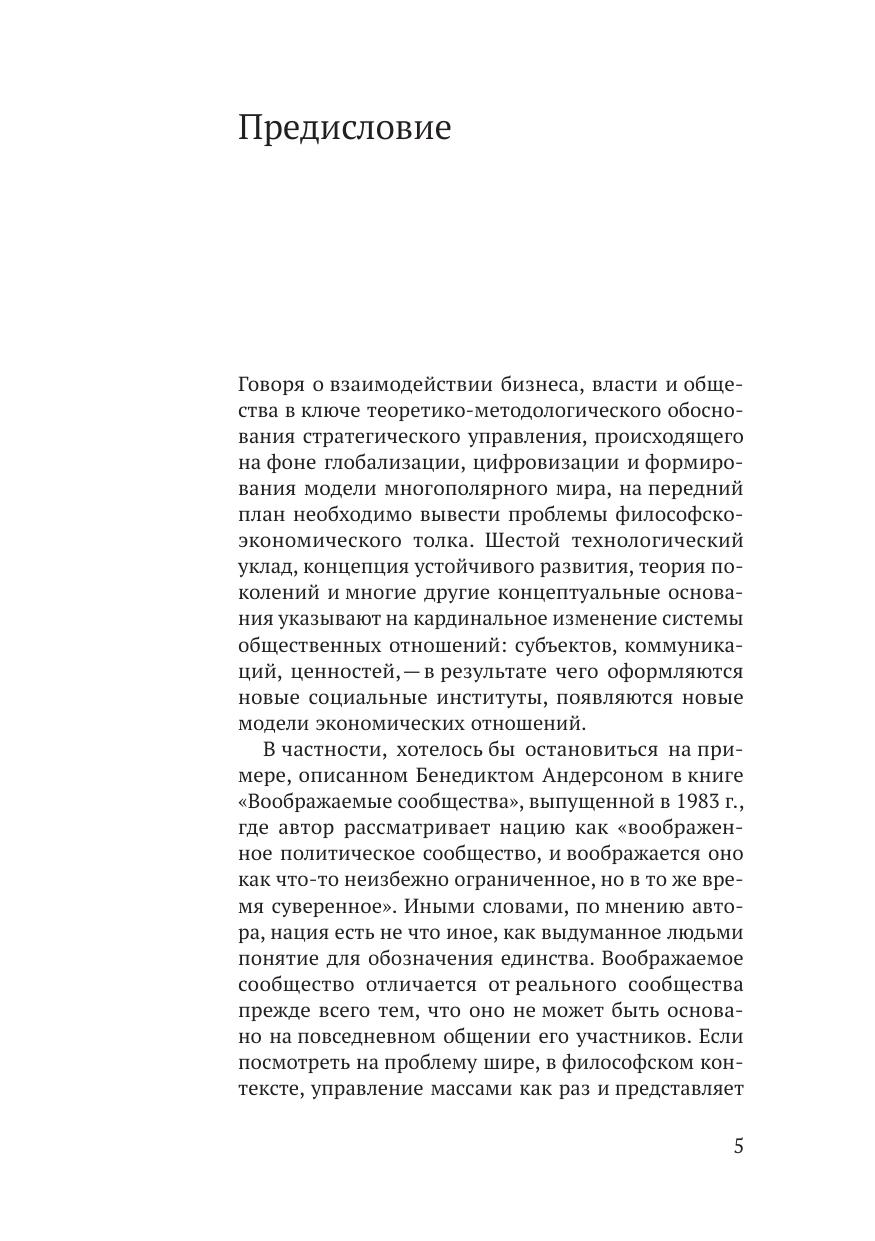 Монография «Бизнес, власть и общество: теоретико-методологические основы стратегического управления» представляет собой научное исследование проблемы поиска философско-экономического обоснования современной концепции стратегического управления, опирающейся на конструктивное взаимодействие ключевых социальных институтов в рамках партнерства бизнеса, власти и общества. Издание рассчитано на исследователей, преподавателей, государственных служащих, социально активных предпринимателей и представителей некоммерческих организаций.