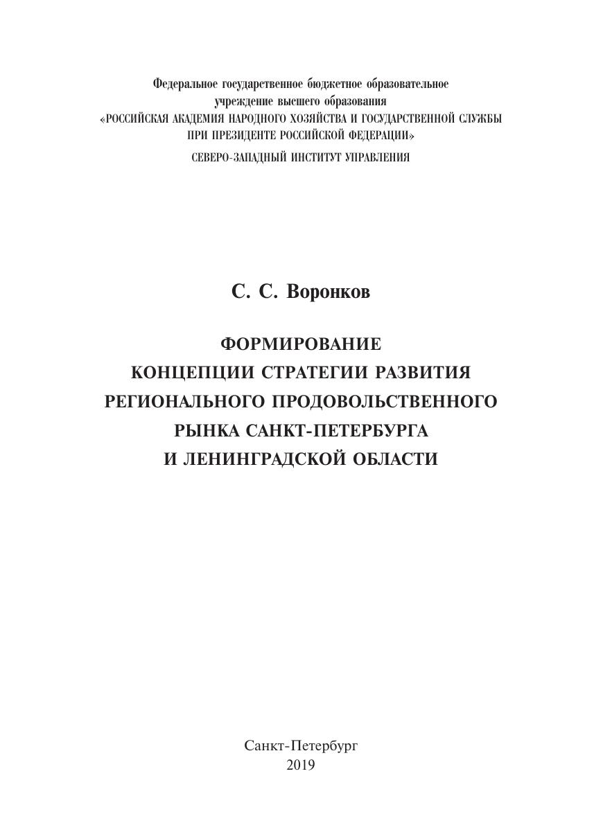 Формирование концепции стратегии развития регионального продовольственного рынка Санкт-Петербурга и Ленинградской области