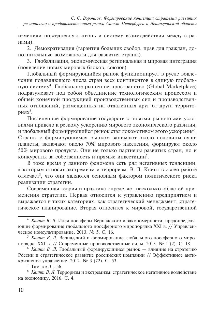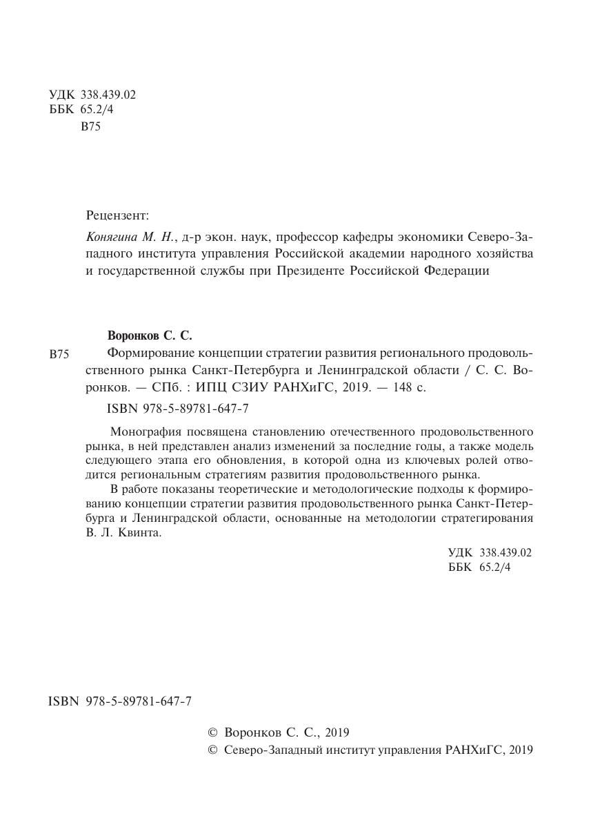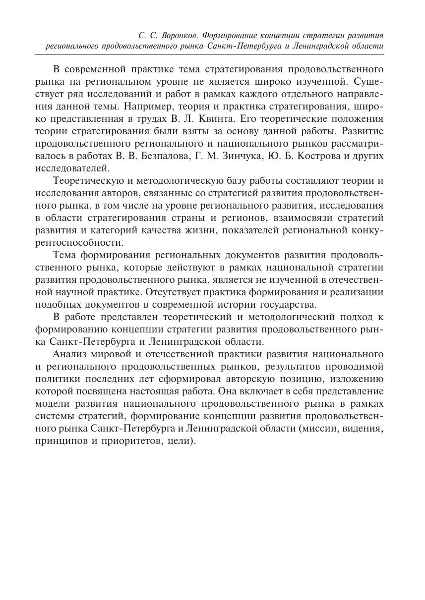 Монография посвящена становлению отечественного продовольственного рынка, в ней представлен анализ изменений за последние годы, а также модель следующего этапа его обновления, в которой одна из ключевых ролей отводится региональным стратегиям развития продовольственного рынка. В работе показаны теоретические и методологические подходы к формированию концепции стратегии развития продовольственного рынка Санкт-Петербурга и Ленинградской области, основанные на методологии стратегирования В. Л. Квинта.