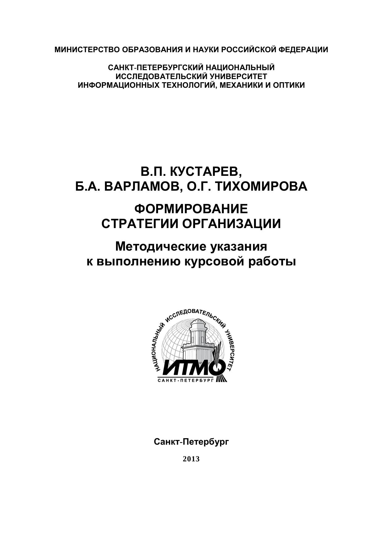 Формирование стратегии организации. Методические указания к выполнению курсовой работ