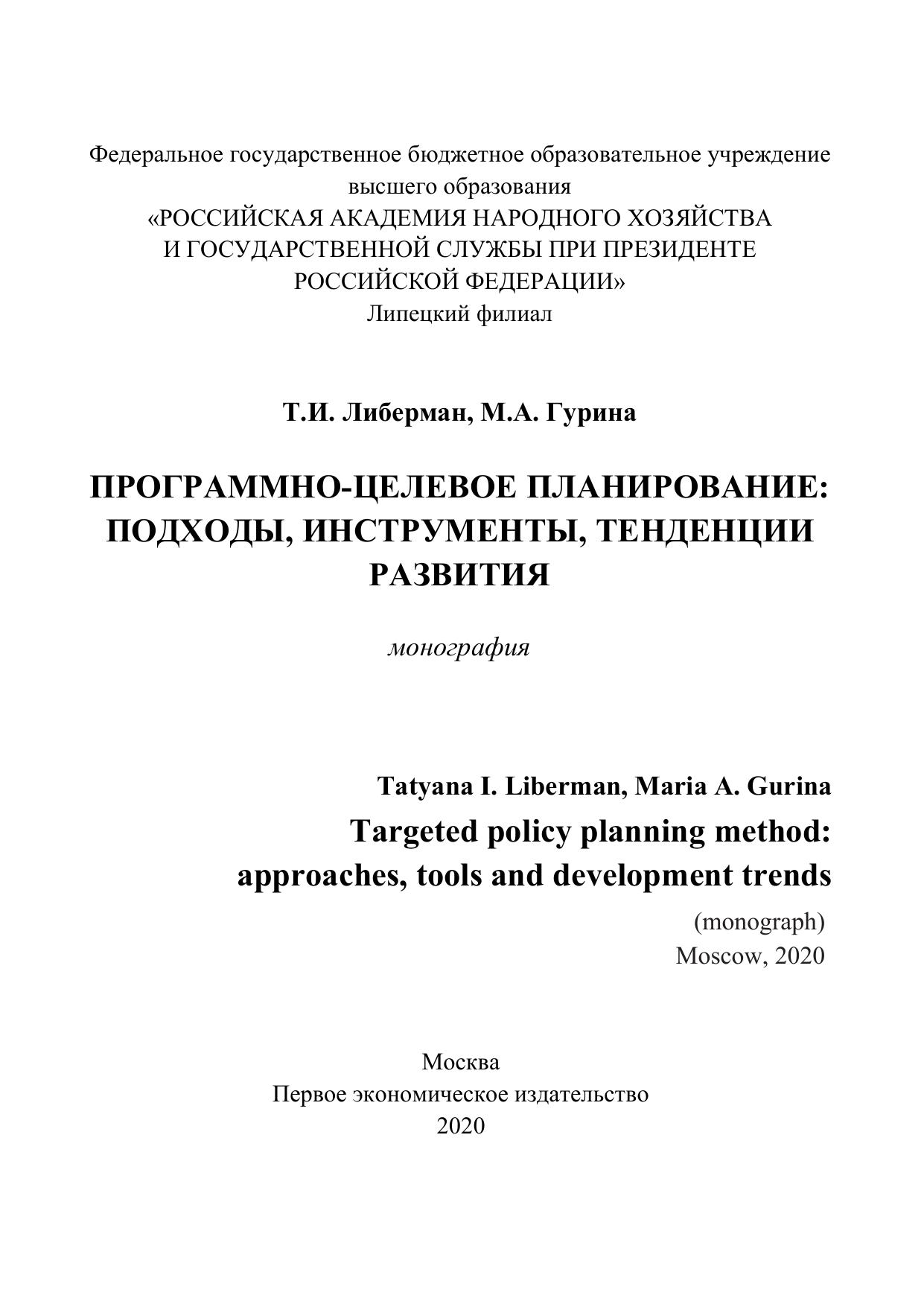Программно-целевое планирование: подходы, инструменты, тенденции развития