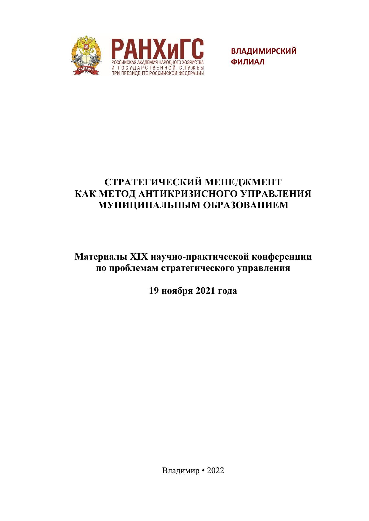 Стратегический менеджмент как метод антикризисного управления муниципальным образованием: материалы XIX научно-практической конференции по проблемам стратегического управления 19 ноября 2021 года