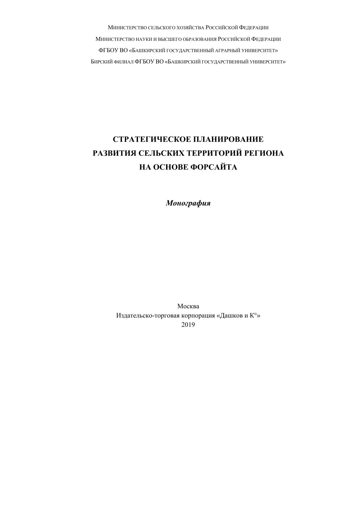 В монографии рассмотрены теоретико-методологические аспекты стратегического планирования развития сельских территорий региона на основе форсайта. Проведен анализ современного состояния и тенденций развития сельских территорий Республики Башкортостан. Сформированы практические рекомендации по государственной поддержке развития АПК регионов Приволжского федерального округа. Представлены результаты форсайт-прогнозирования развития сельских территорий