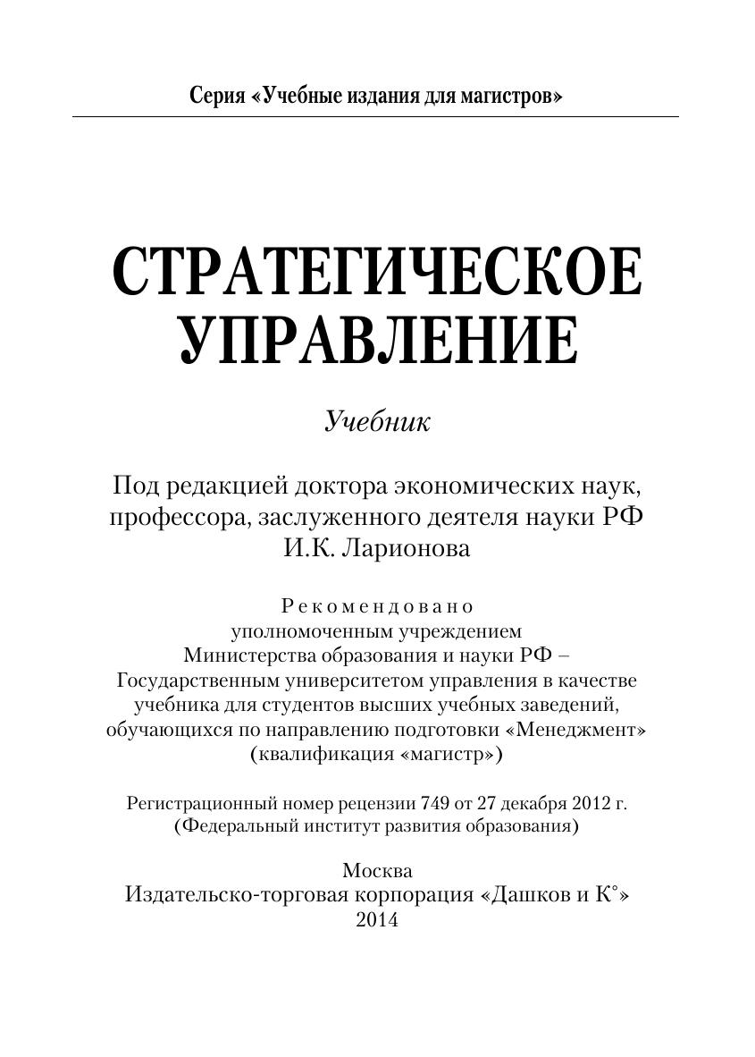 Гриф: Р е к о м е н д о в а н оуполномоченным учреждениемМинистерства образования и науки РФ –Государственным университетом управления в качествеучебника для студентов высших учебных заведений,обучающихся по направлению подготовки «Менеджмент»(квалификация «магистр»)