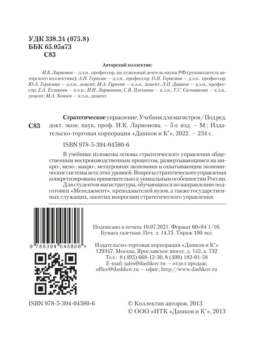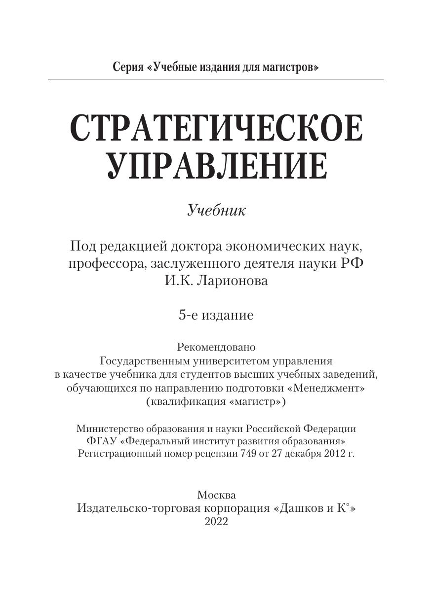 В учебнике изложены основы стратегического управления общественным воспроизводственным процессом, развертывающимся на микро-, мезо-, макро-, мегауровнях экономики и охватывающим экономические системы всех этих уровней. Вопросы стратегического управления конкретизированы применительно к уникальным особенностям России. Для студентов магистратуры, обучающихся по направлению подготовки «Менеджмент», преподавателей вузов, а также государственных служащих, занятых вопросами стратегического управления.