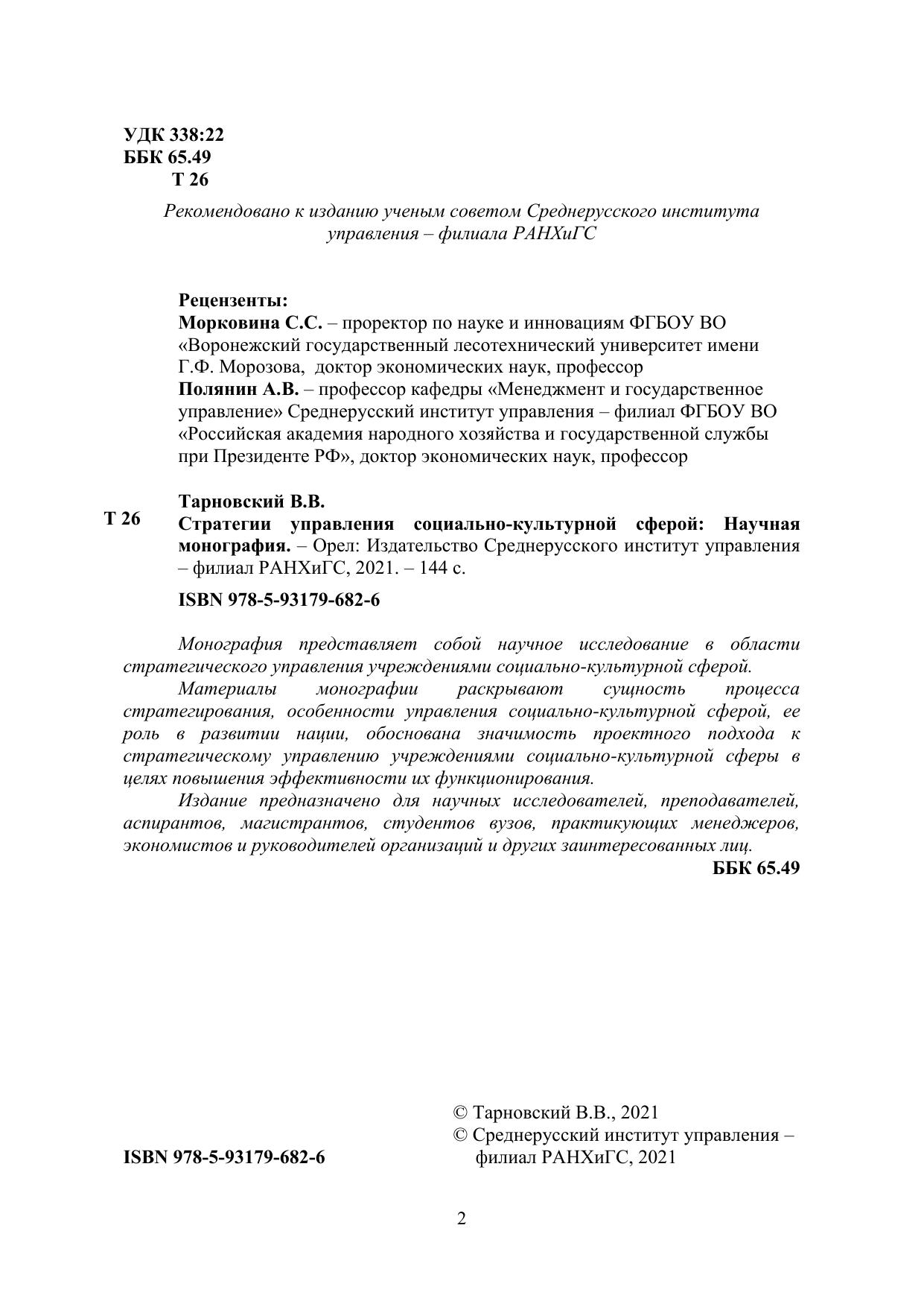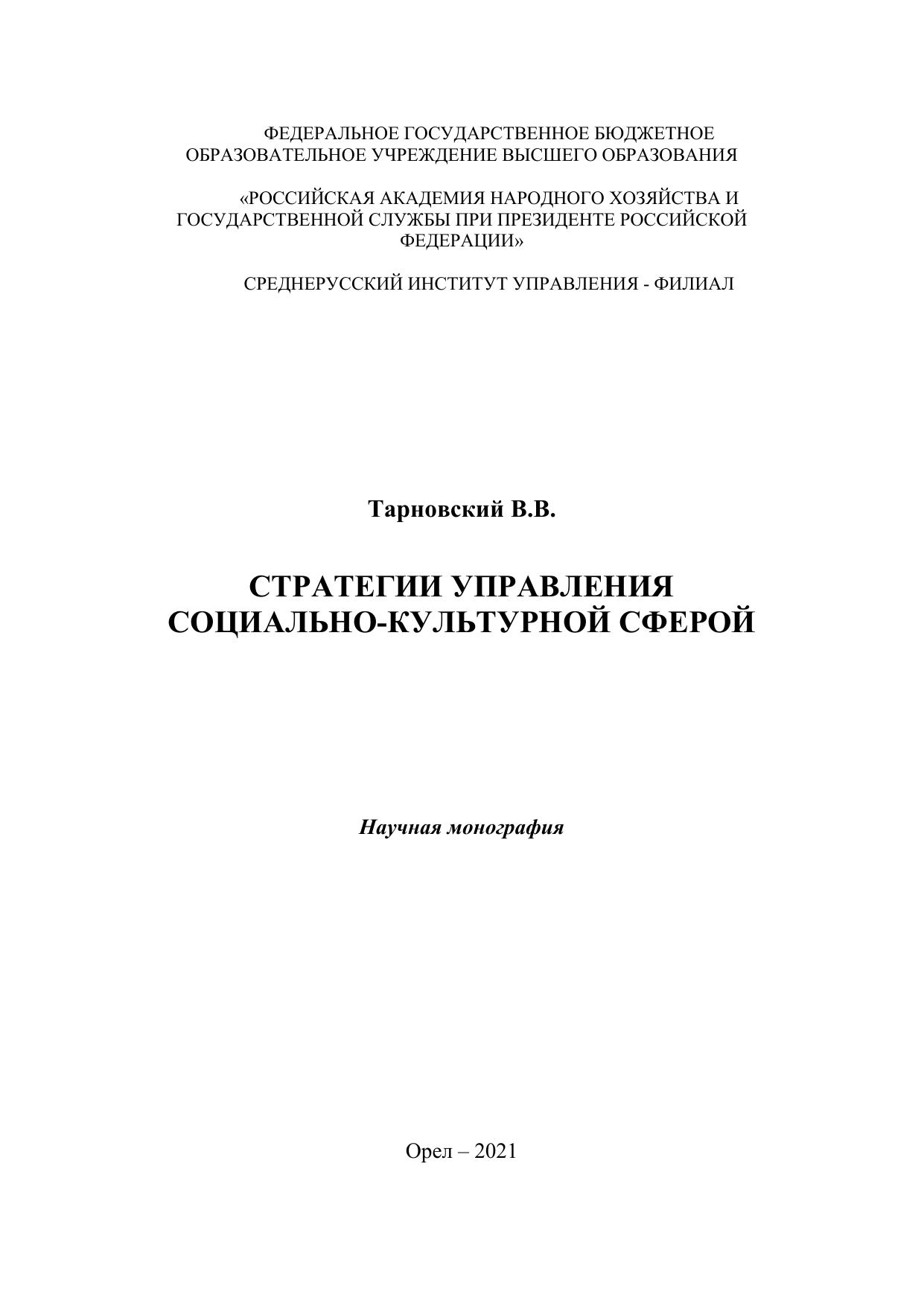 Монография представляет собой научное исследование в области стратегического управления учреждениями социально-культурной сферой. Материалы монографии раскрывают сущность процесса стратегирования, особенности управления социально-культурной сферой, ее роль в развитии нации, обоснована значимость проектного подхода к стратегическому управлению учреждениями социально-культурной сферы в целях повышения эффективности их функционирования. Издание предназначено для научных исследователей, преподавателей, аспирантов, магистрантов, студентов вузов, практикующих менеджеров, экономистов и руководителей организаций и других заинтересованных лиц.