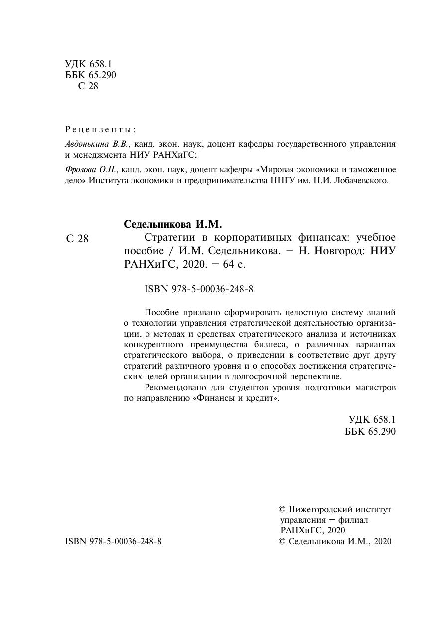 Пособие призвано сформировать целостную систему знаний о технологии управления стратегической деятельностью организации, о методах и средствах стратегического анализа и источниках конкурентного преимущества бизнеса, о различных вариантах стратегического выбора, о приведении в соответствие друг другу стратегий различного уровня и о способах достижения стратегических целей организации в долгосрочной перспективе. Рекомендовано для студентов уровня подготовки магистров по направлению «Финансы и кредит».