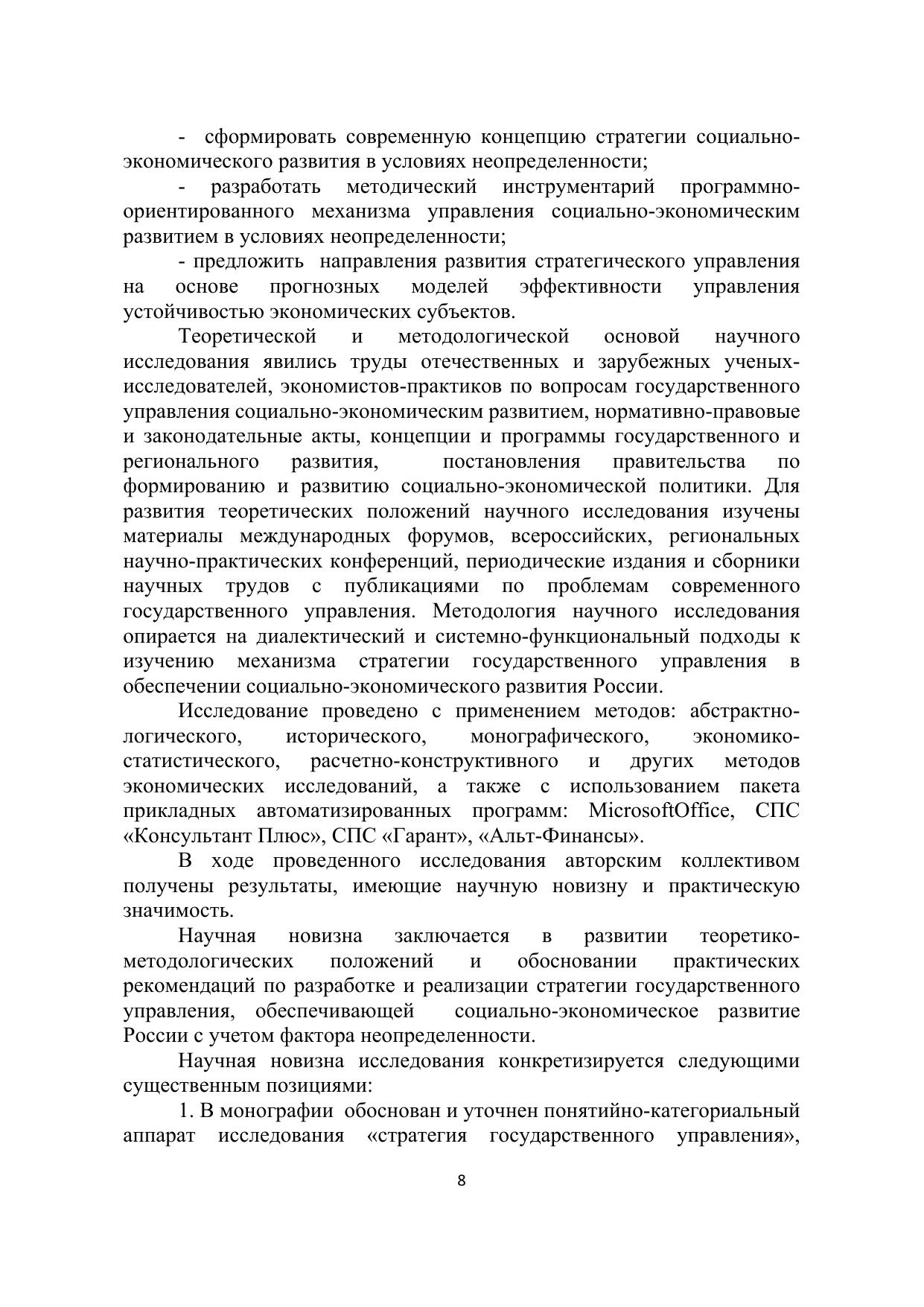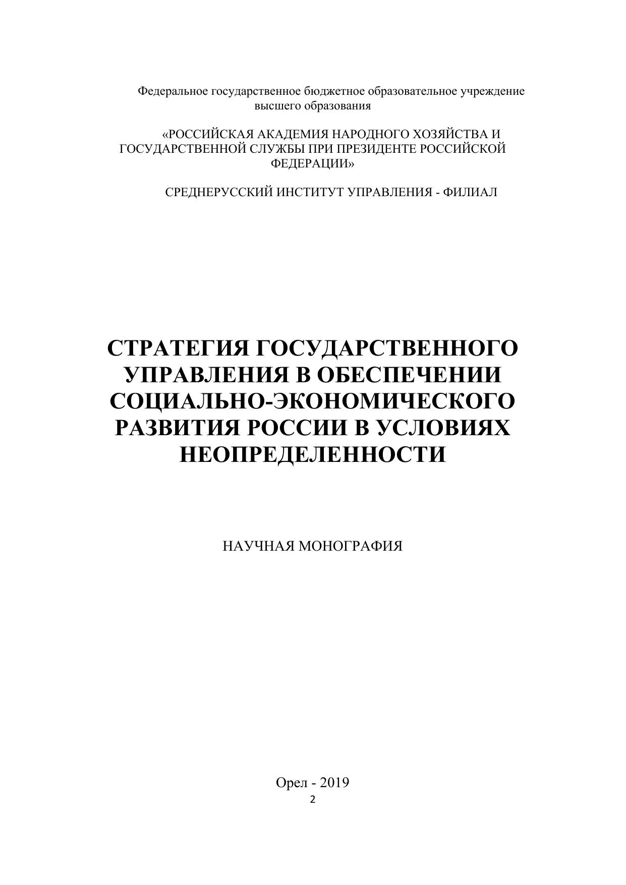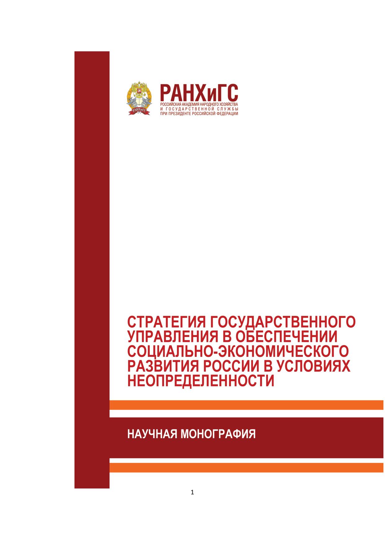 Стратегия государственного управления в обеспечении социально-экономического развития России в условиях неопределенности