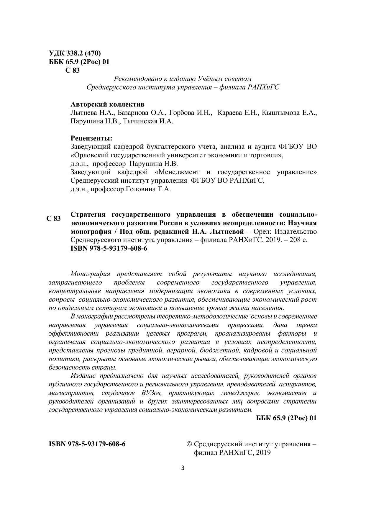 Монография представляет собой результаты научного исследования, затрагивающего проблемы современного государственного управления, концептуальные направления модернизации экономики в современных условиях, вопросы социально-экономического развития, обеспечивающие экономический рост по отдельным секторам экономики и повышение уровня жизни населения. В монографии рассмотрены теоретико-методологические основы и современные направления управления социально-экономическими процессами, дана оценка эффективности реализации целевых программ, проанализированы факторы и ограничения социально-экономического развития в условиях неопределенности, представлены прогнозы кредитной, аграрной, бюджетной, кадровой и социальной политики, раскрыты основные экономические рычаги, обеспечивающие экономическую безопасность страны. Издание предназначено для научных исследователей, руководителей органов публичного государственного и регионального управления, преподавателей, аспирантов, магистрантов, студентов ВУЗов, практикующих менеджеров, экономистов и руководителей организаций и других заинтересованных лиц вопросами стратегии государственного управления социально-экономическим развитием.