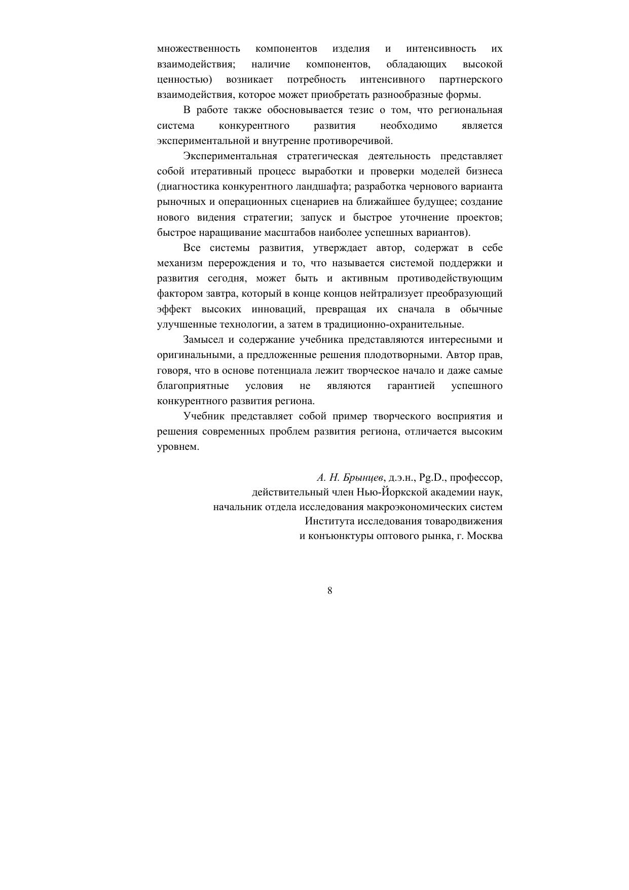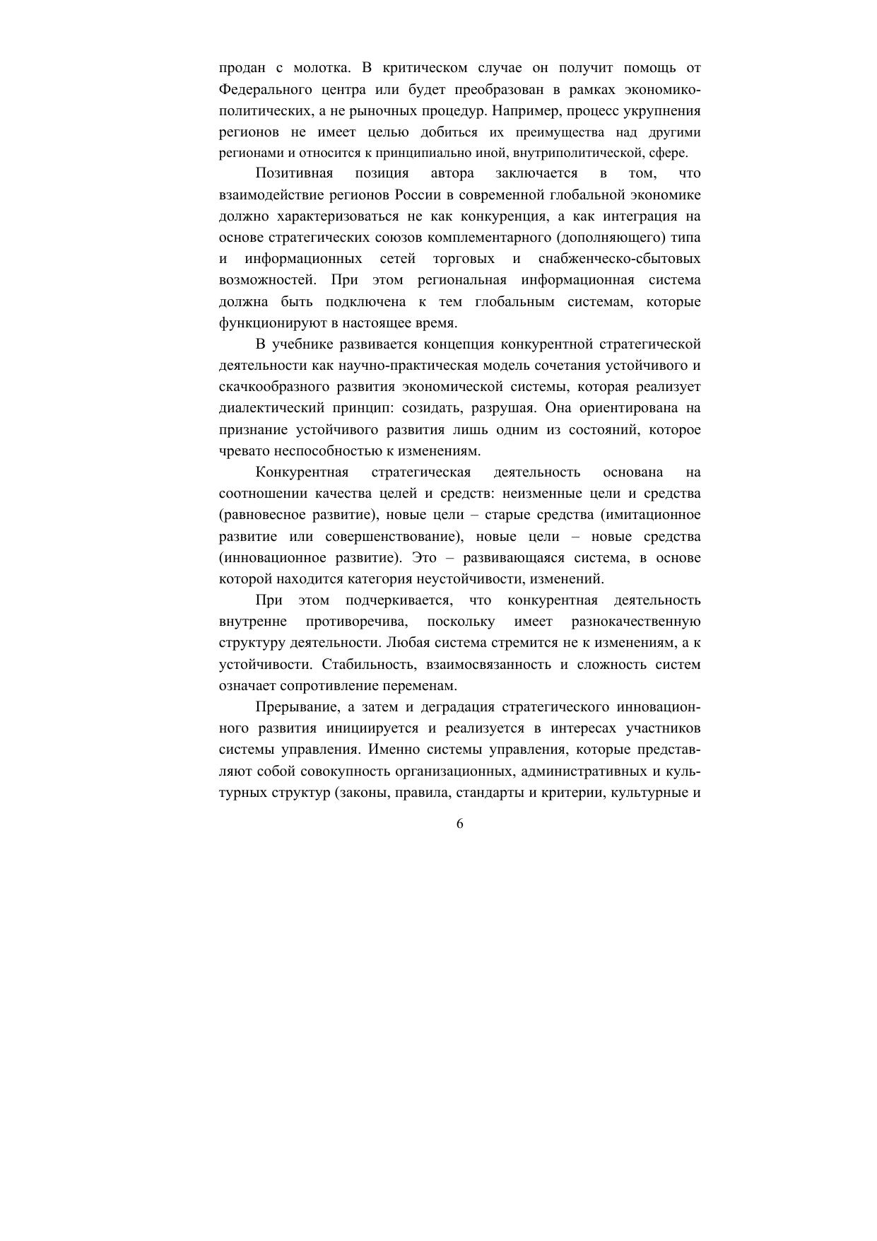 В учебнике рассматривается проблема стратегии конкурентного развития региона как научно-практическая проблема, как концепция, как стратегическая деятельность, как креативная деятельность и как проблема управления. Регион рассматривается как объект и субъект развития, который формирует и реализует свой потенциал, опираясь на общенаучный системный подход, развитие творческого восприятия стратегического развития и управления как сложного противоречивого процесса, включающего в себя в качестве необходимых элементов внутри- региональные и межрегиональные интеграцию и партнерство. Для студентов магистратуры, обучающихся по направлениям подготовки «Государственное и муниципальное управление», «Менеджмент» и «Экономика», а также руководителей и специалистов органов управления регионами.
