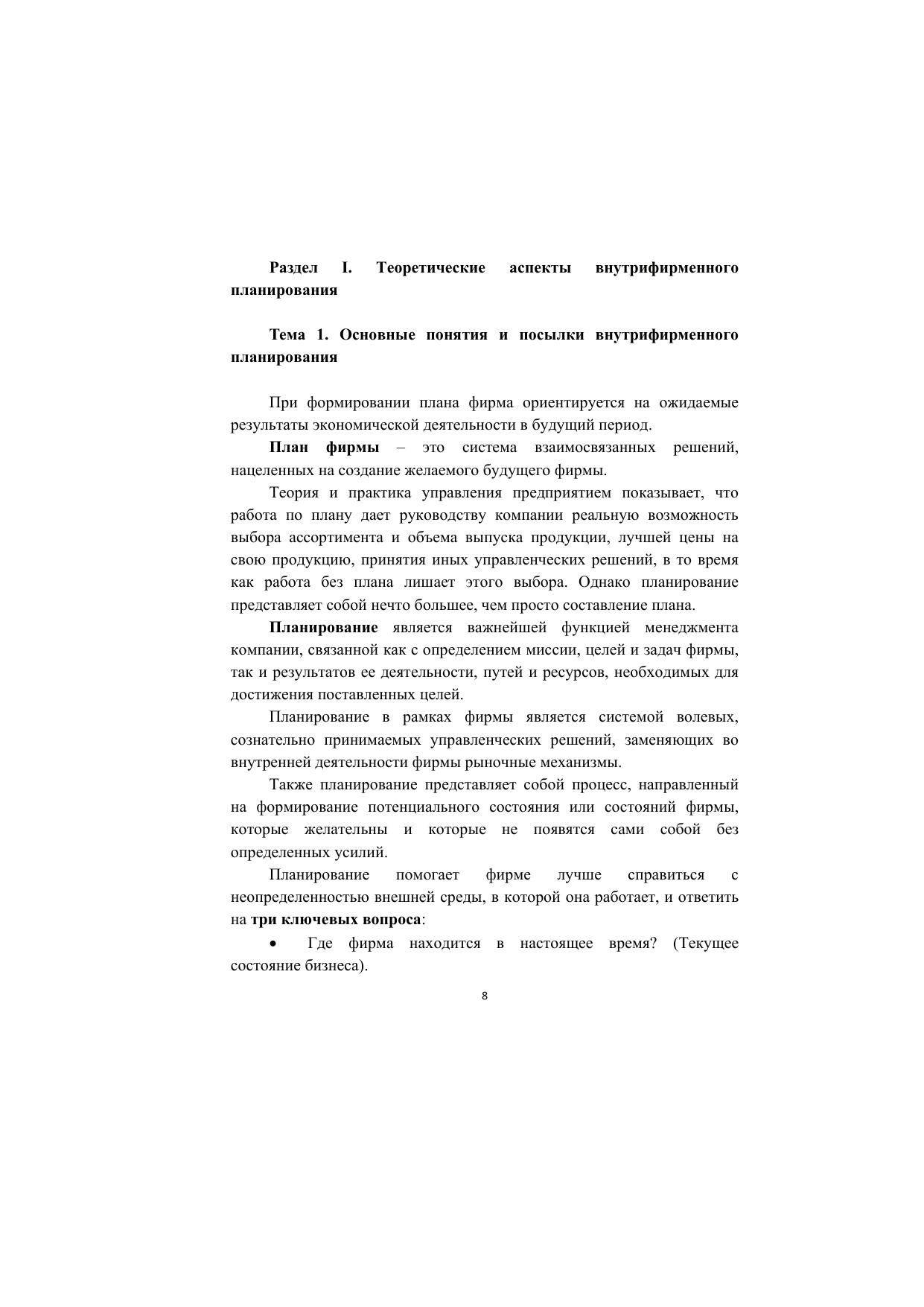 Внутрифирменное планирование