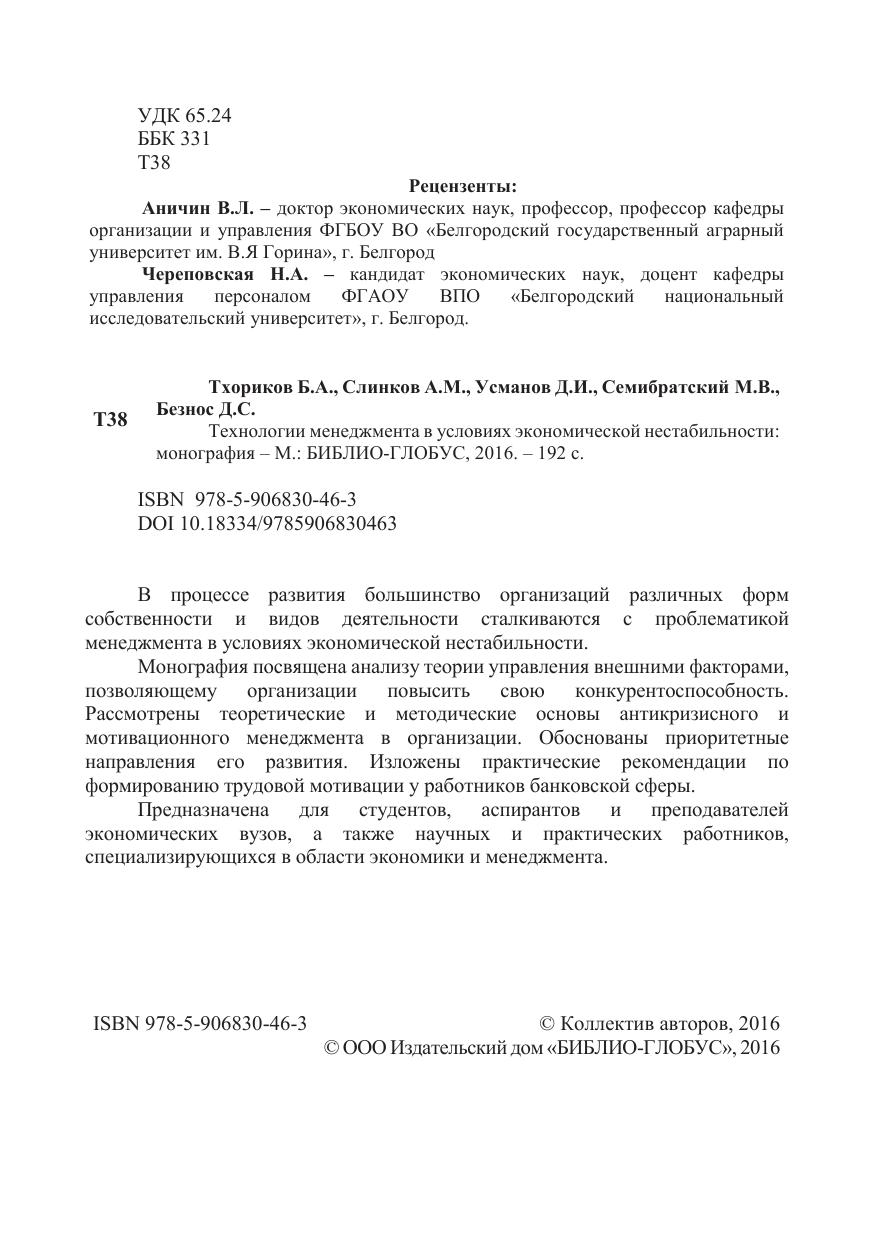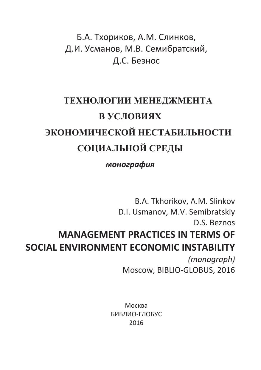Технологии менеджмента в условиях экономической нестабильности