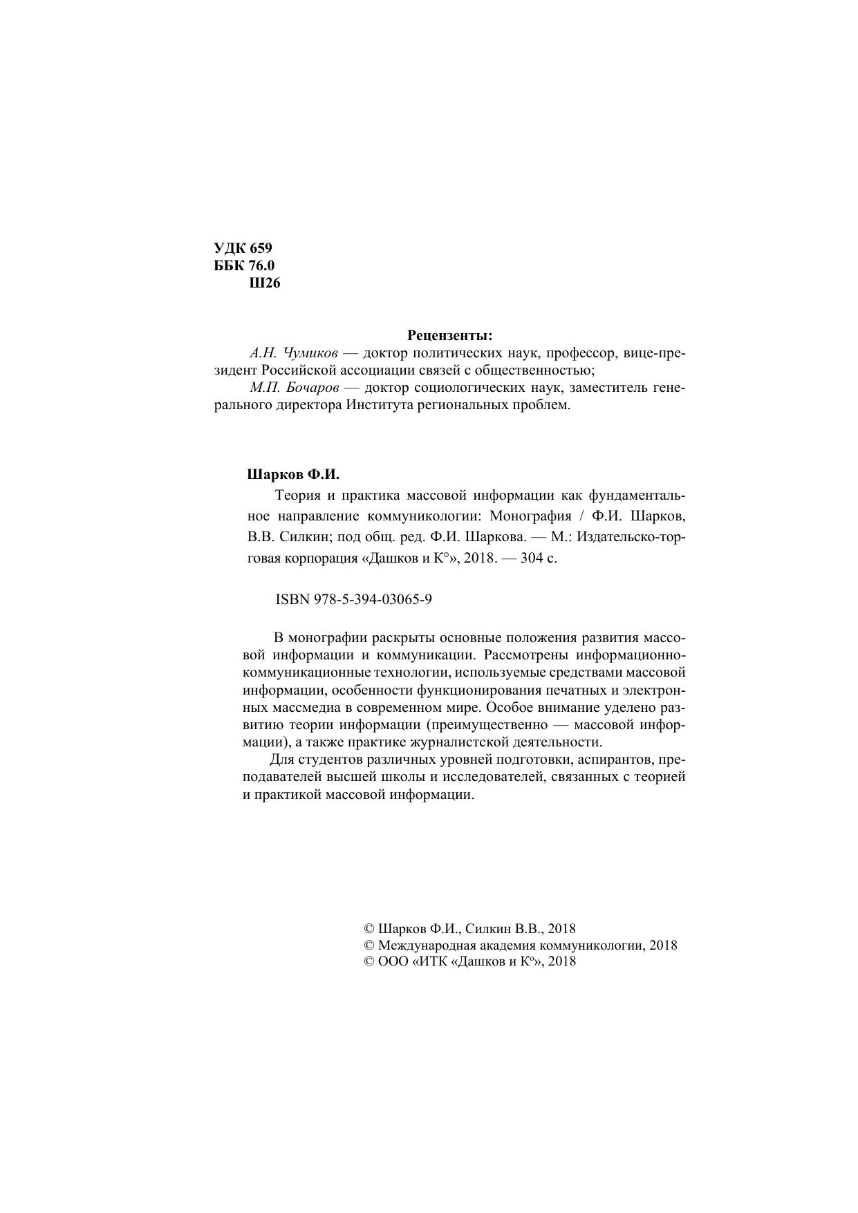 Для студентов различных уровней подготовки, аспирантов, преподавателей высшей школы и исследователей, связанных с теорией и практикой массовой информации.