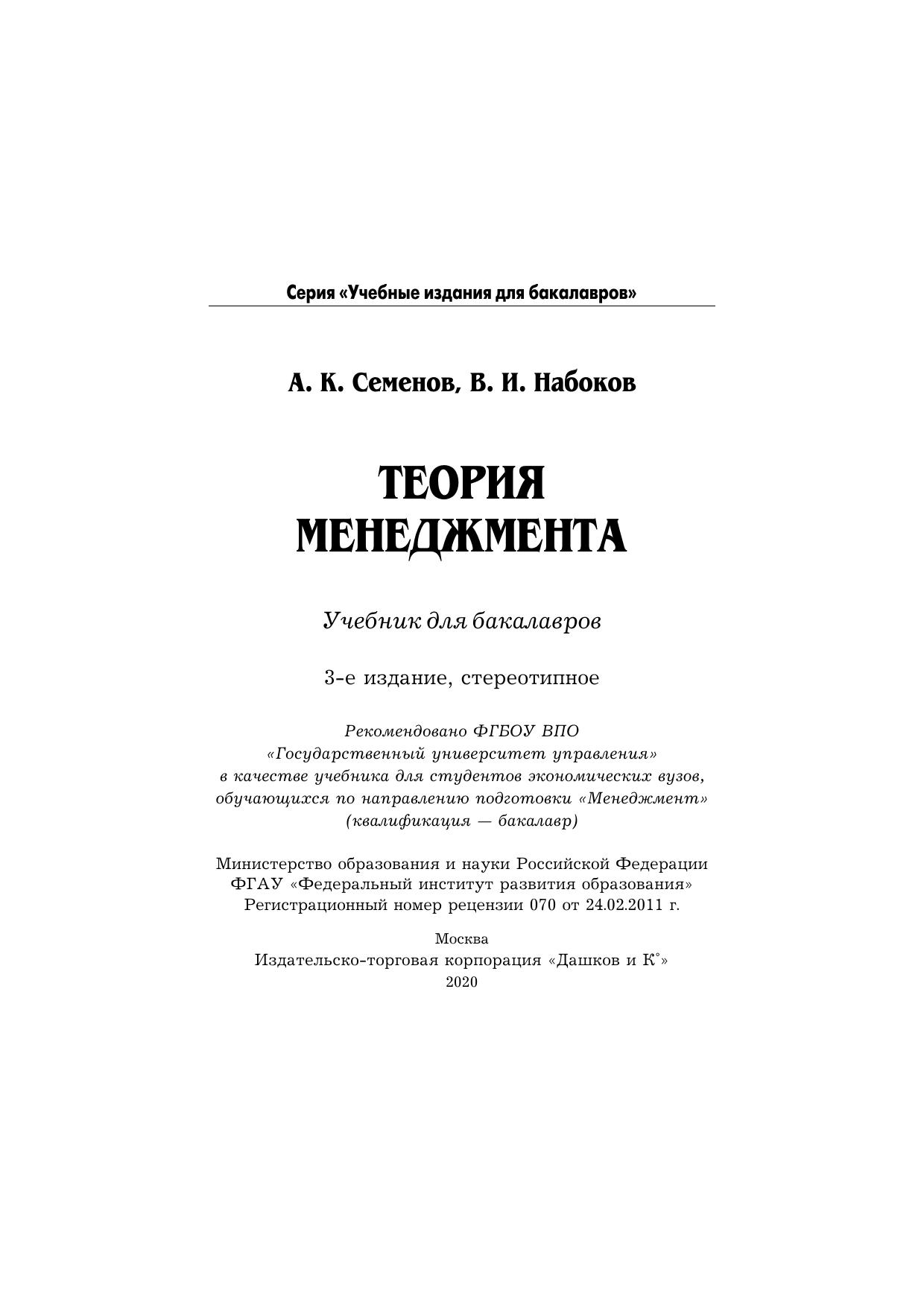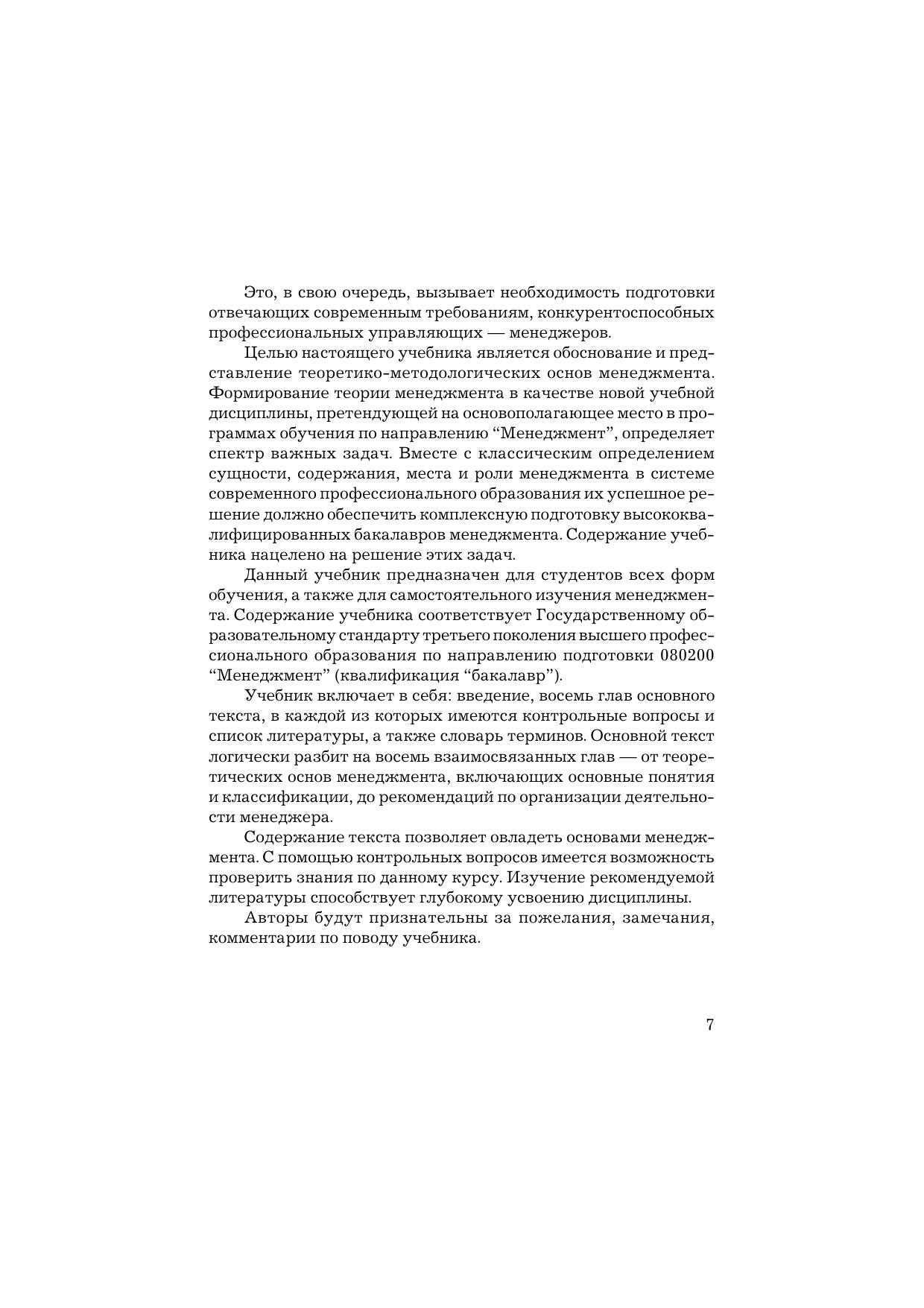 В учебнике рассматриваются теоретические и методологические основы современного менеджмента. Освещаются вопросы планирования, организации, мотивации, контроля, координации. Особое внимание уделено роли менеджера в системе управления организацией в рыночной экономике. Учебник предназначен для студентов, получающих высшее профессиональное образование по направлению подготовки 080200 "Менеджмент" (квалификация "бакалавр"). Содержание учебника соответствует требованиям Федерального государственного образовательного стандарта третьего поколения. Учебник также может быть полезен для преподавателей, практических работников, всех, кто интересуется проблемами управления организациями в современных условиях