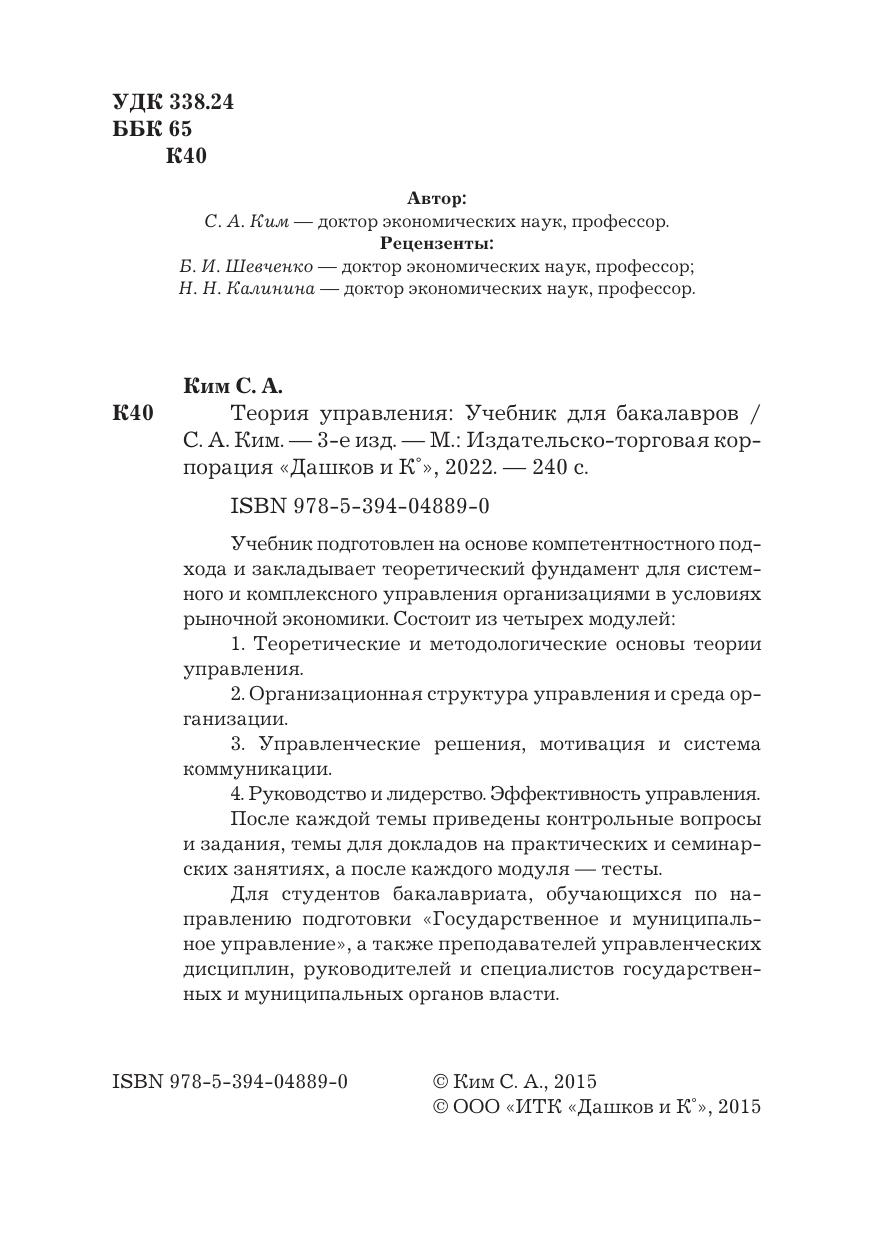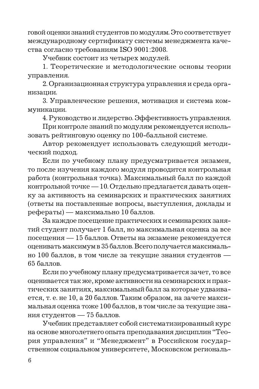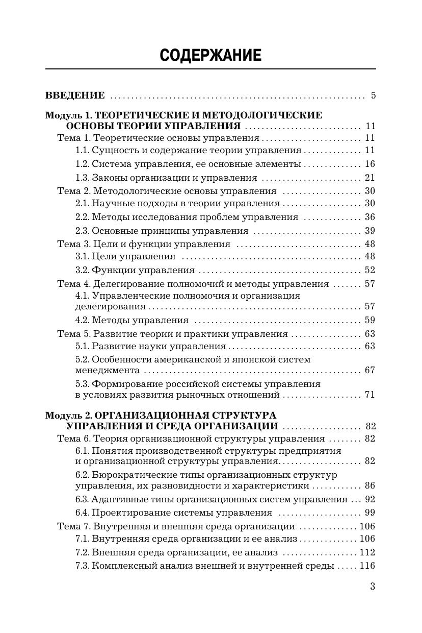 Учебник подготовлен на основе компетентностного подхода и закладывает теоретический фундамент для системного и комплексного управления организациями в условиях рыночной экономики. Состоит из четырех модулей: 1. Теоретические и методологические основы теории управления. 2. Организационная структура управления и среда организации. 3. Управленческие решения, мотивация и система коммуникации. 4. Руководство и лидерство. Эффективность управления. После каждой темы приведены контрольные вопросы и задания, темы для докладов на практических и семинарских занятиях, а после каждого модуля-тесты. Для студентов бакалавриата, обучающихся по направлению подготовки "Государственное и муниципальное управление", а также преподавателей управленческих дисциплин, руководителей и специалистов государственных и муниципальных органов власти.
