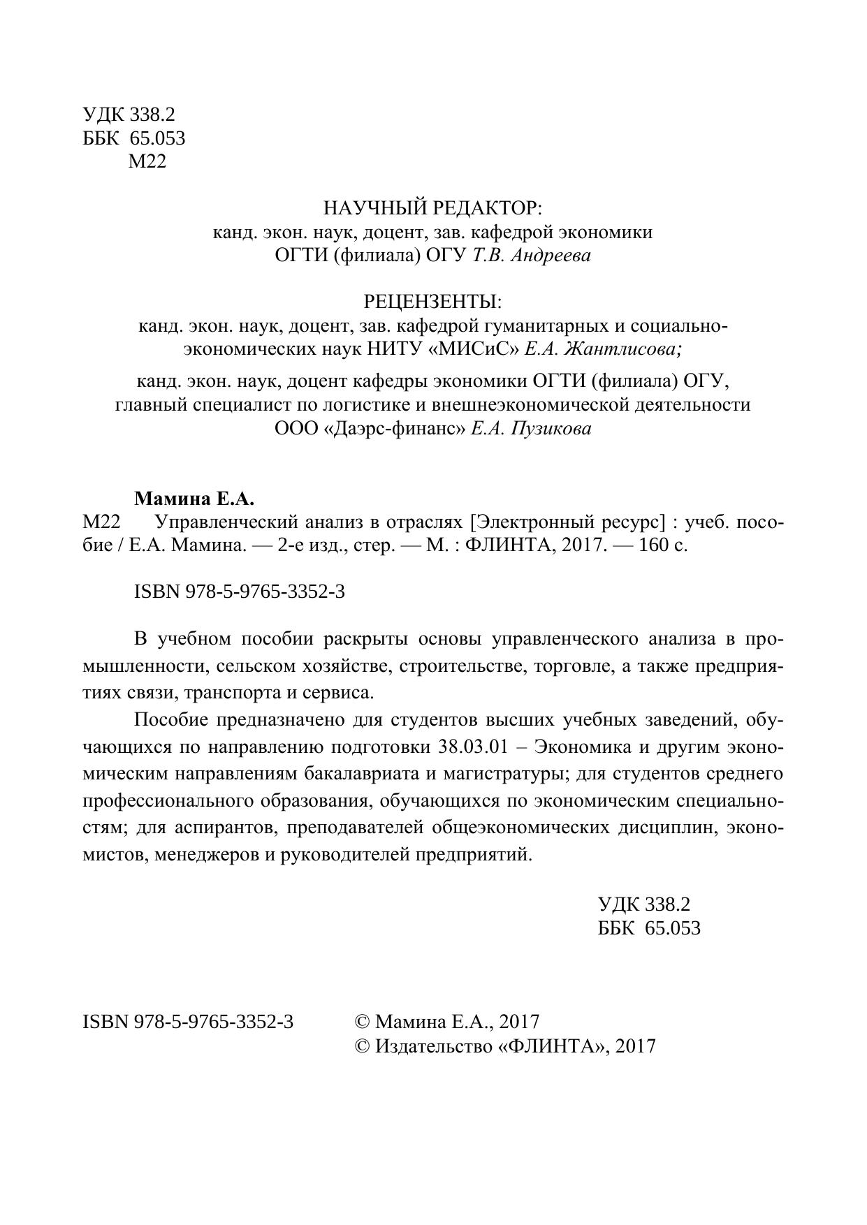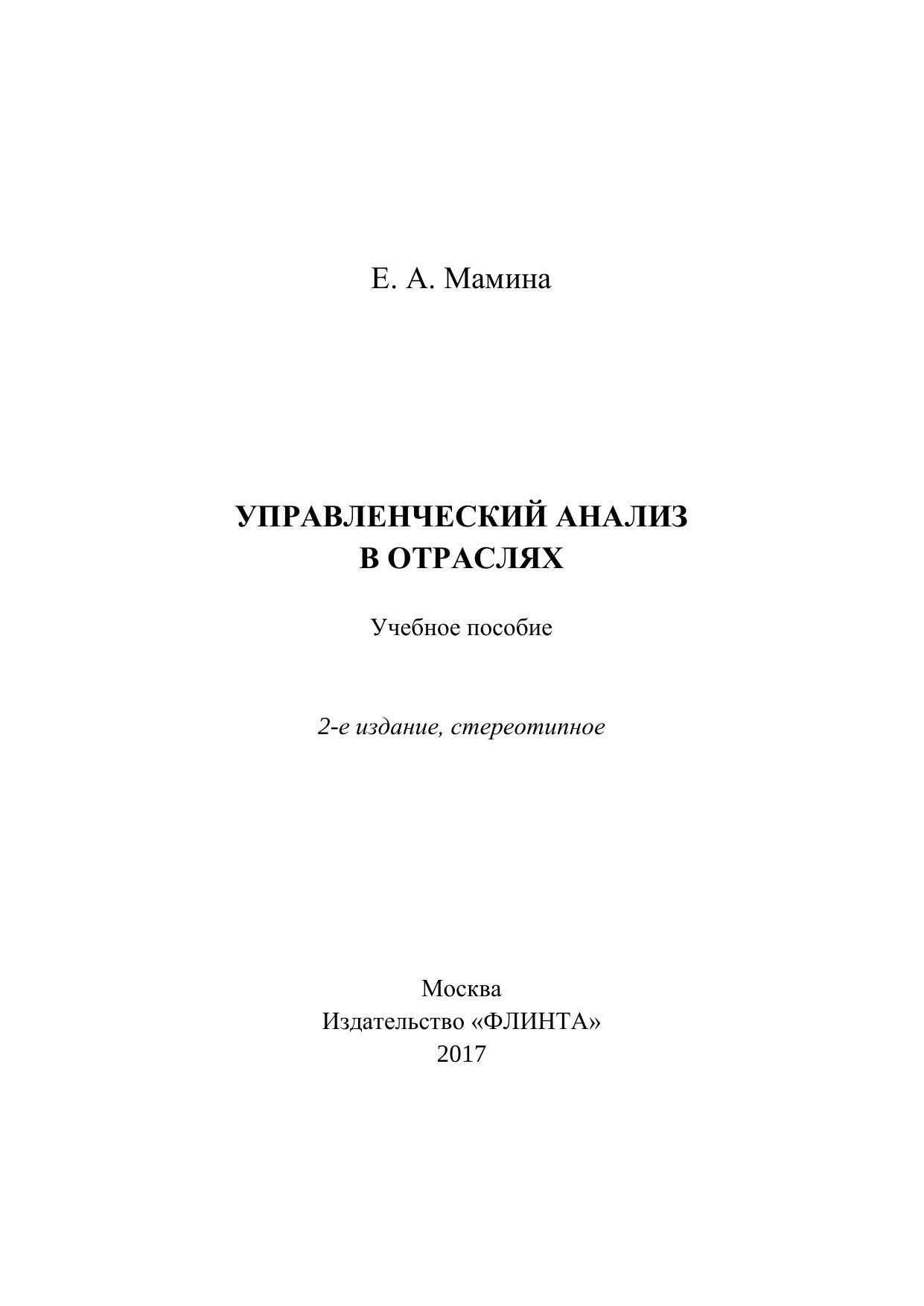 Управленческий анализ в отраслях: учебное пособие