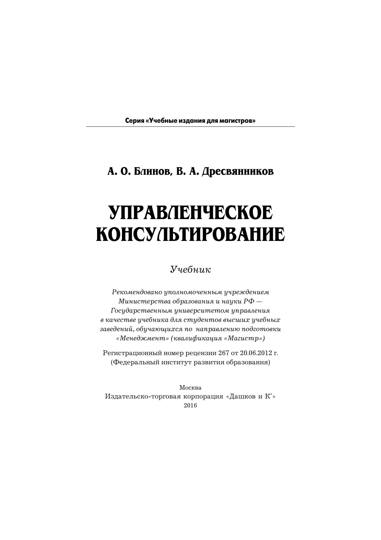 ваются основные понятия и классификация управленческого консультирования как формы бизнеса. Особое внимание уделяется подходам, принципам, методам и инструментам управленческого консультирования, имеющим практическое значение.