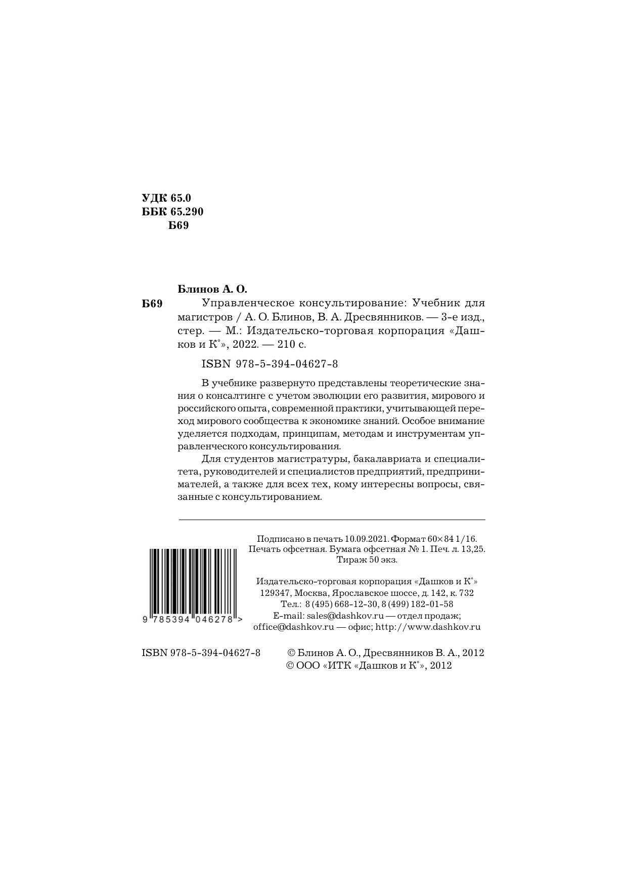 В учебнике развернуто представлены теоретические знания о консалтинге с учетом эволюции его развития, мирового и российского опыта, современной практики, учитывающей переход мирового сообщества к экономике знаний. В нем рассматри? ваются основные понятия и классификация управленческого консультирования как формы бизнеса. Особое внимание уделяется подходам, принципам, методам и инструментам управленческого консультирования, имеющим практическое значение. Представлены отношения между консультантом и клиентом, процесс их взаимодействия. Рассматриваются особенности внутреннего и внешнего, экспертного, процессного, проектного, обучающего консалтинга, а также его различных специфических видов. Отражено консультирование по управлению информацией, знаниями, интеллектуальным капиталом организации. Для студентов магистратуры, бакалавриата и специалитета, руководителей и специалистов предприятий, предпринимателей, начинающих и практикующих консультантов, а также для всех тех, кому интересны вопросы, связанные с консультированием.