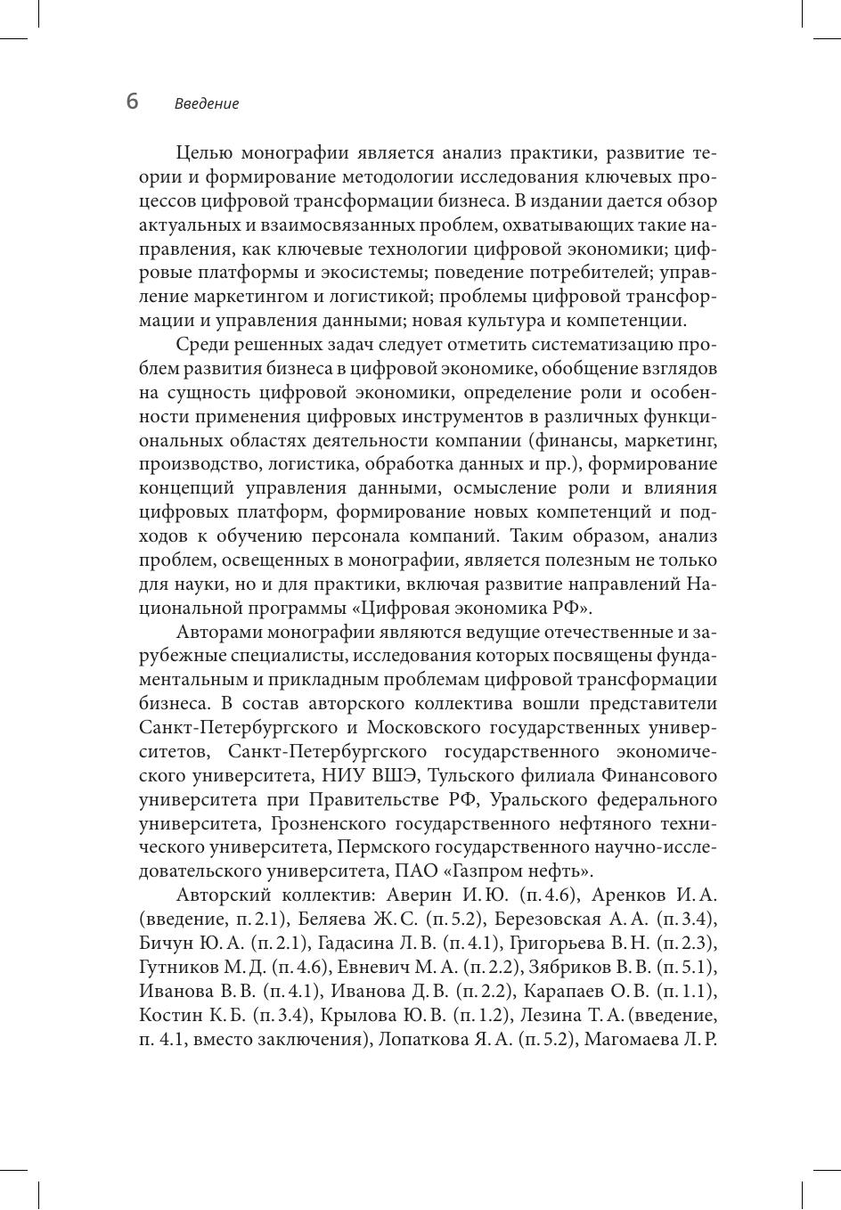 Книга посвящена рассмотрению проблем теории и практики трансформации бизнеса в эпоху интернета. В ней представлены результаты изучения комплекса междисциплинарных проблем, обусловленных развитием цифровой экономики. Рассматриваются основные направления происходящих перемен: ключевые технологии и механизмы; цифровые платформы и экосистемы; клиентоориентированность и управление маркетингом и логистикой; новая культура и компетенции; а также общие проблемы цифровой трансформации.