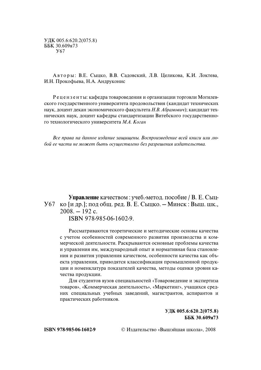 Рассматривается сущность качества товаров, эволюция подходов к оценке качества, зарубежный опыт в области управления качеством. Характеризуются показатели качества с использованием методов квалиметрии, статистические методы в обеспечении качества продукции. Большое внимание уделяется подтверждению соответствия в обеспечении качества, потребительской оценке качества, оценке степени удовлетворенности потребителей. Для студентов вузов, специалистов.