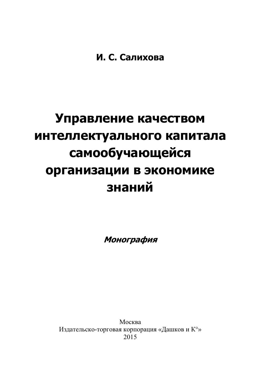 Управление качеством интеллектуального капитала самообучающейся организации в экономике знаний: монография