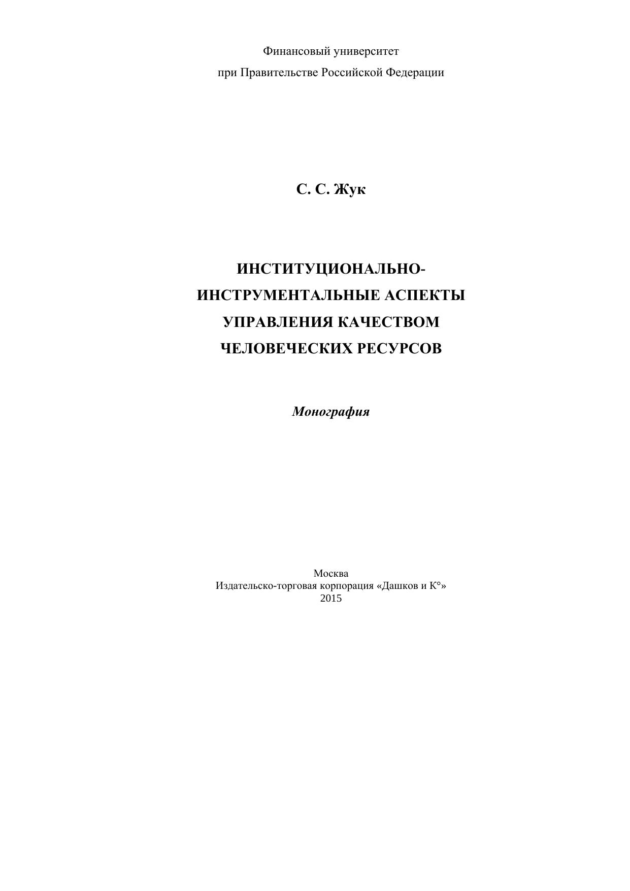 Институционально-инструментальные аспекты управления качеством человеческих ресурсов: монография