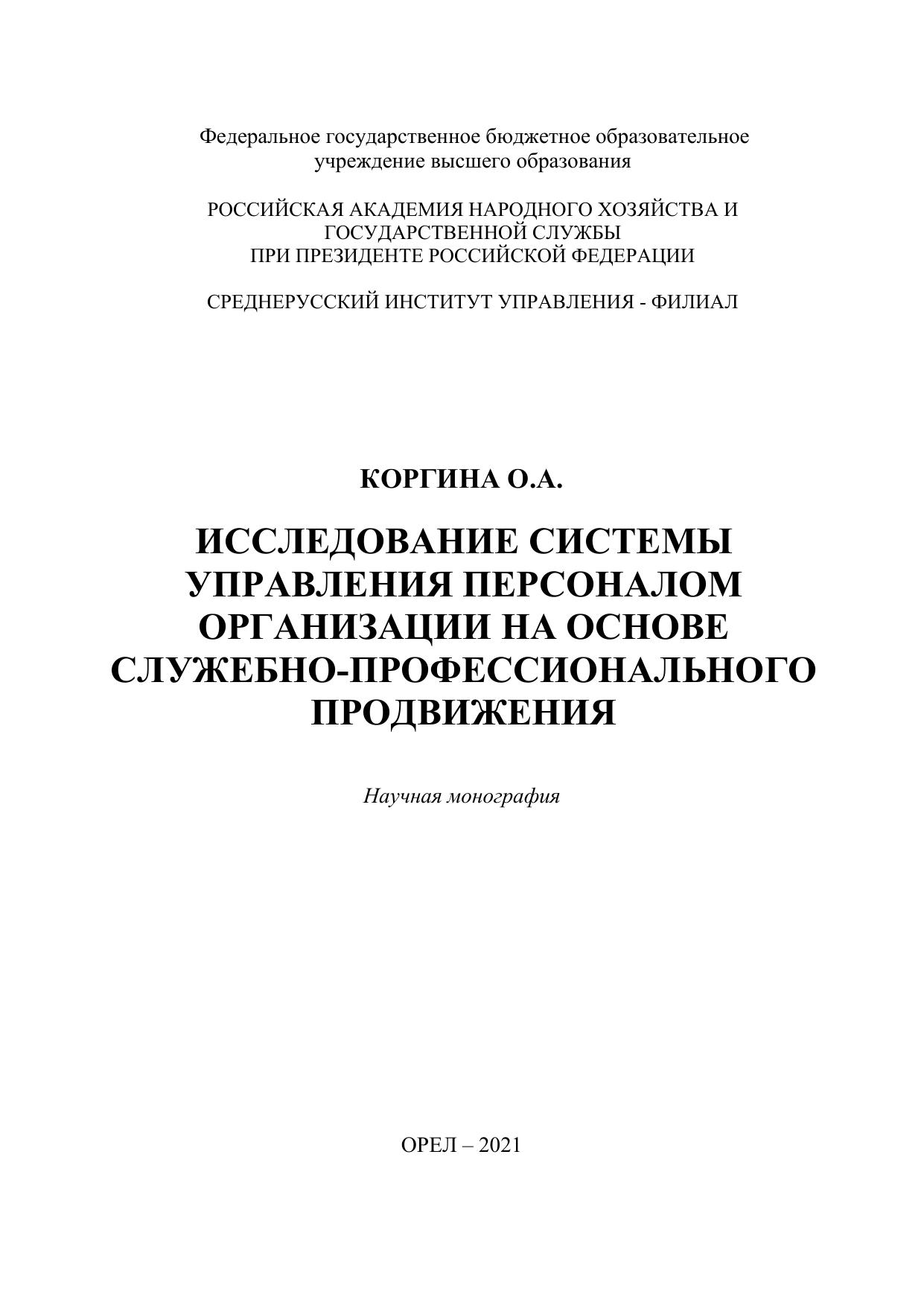 Исследование системы управления персоналом организации на основе служебно-профессионального продвижения
